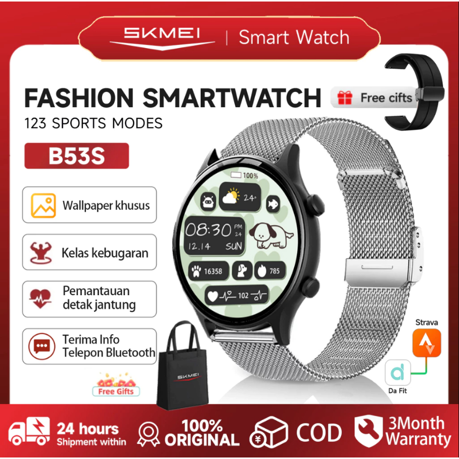 Skmei B53S Smartwatch Support Strava Jam Tangan Pria Smartwatch Wanita Elegan Sport Tracker | Bluetooth 5.0 Jam Tangan Pria | Skmei Smartwatch IP67 Tahan Air | Pedometer |123 jenis model olahraga |Pemantau Detak Jantung