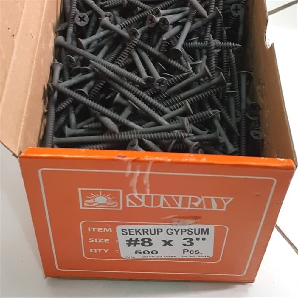 Skrup Gypsum 7cm / Skrup Gypsum Sunray 8 x 3" / Sekrup Hitam 8 x 3" Sunray / 20pcs