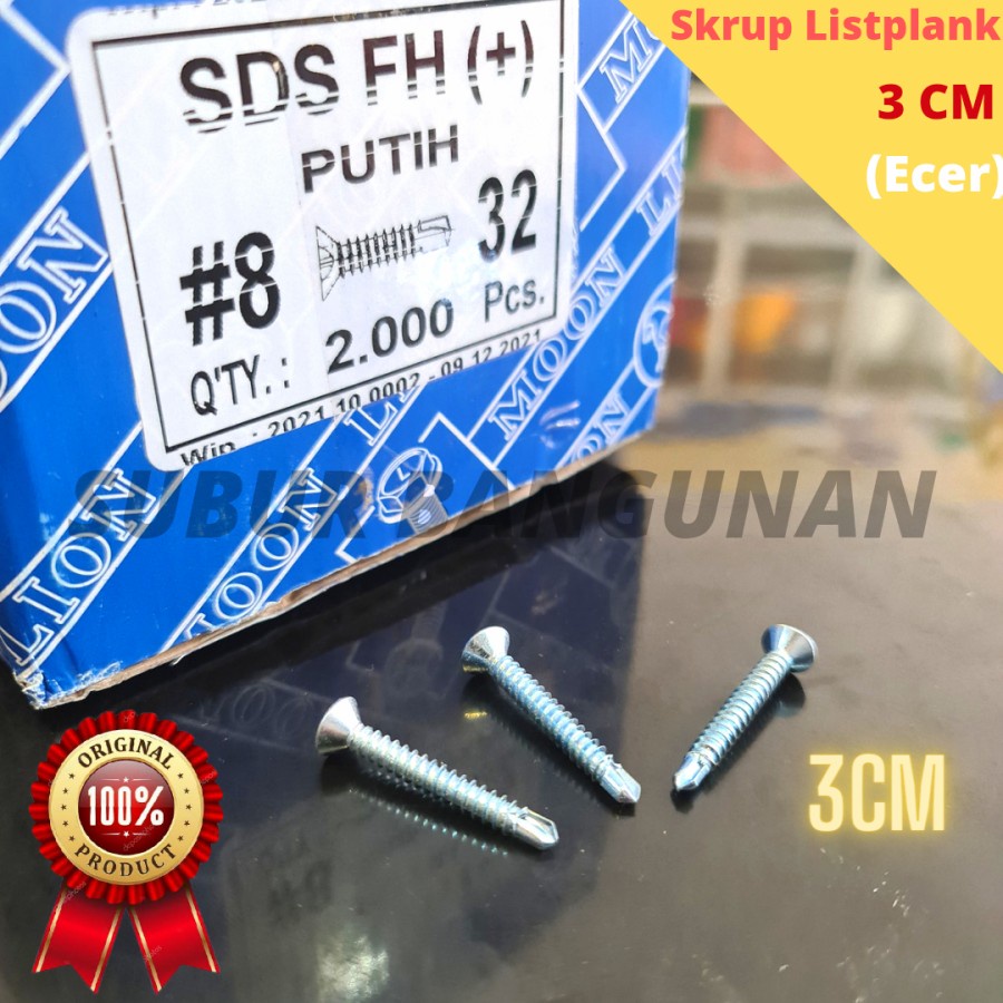 Skrup Putih Listplank 3 Cm / Skrup List Plang 1 1/4 Inch Skrup SDS FH