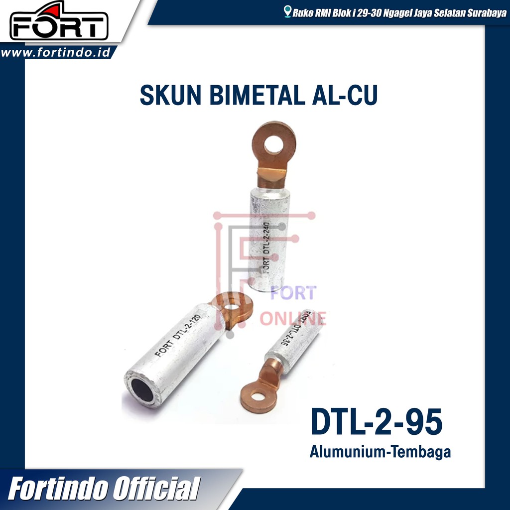 Skun Bimetal AL-CU DTL 2-95 Scun Copper Aluminium Tembaga Cable Lugs Terminal Kabel MERK FORT