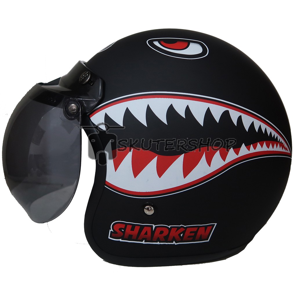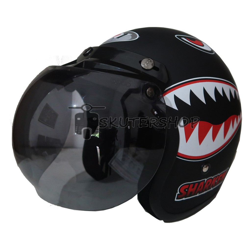 Skutershop Helm Bogo Retro SNI JPN Klasik Jap Style The Sharken Meg Wild Eyes Hitam Doff Kaca Ori