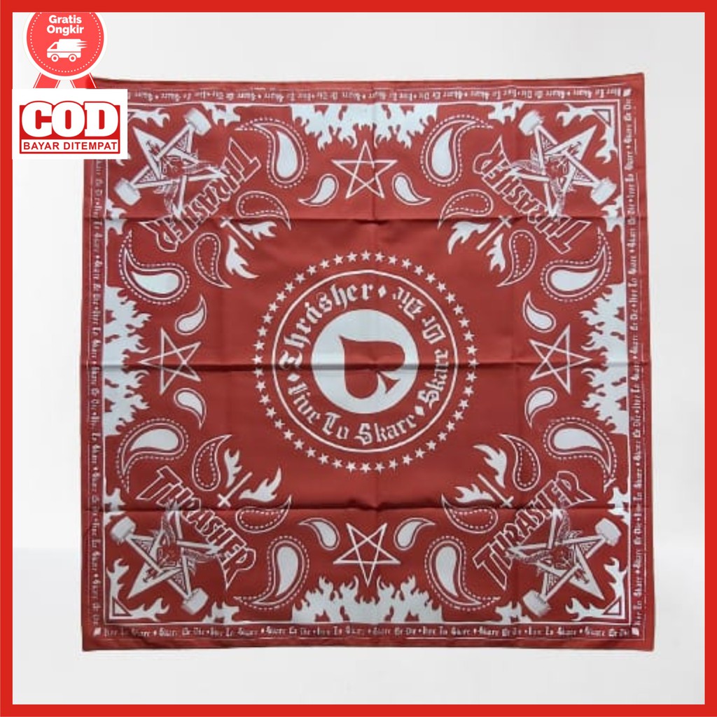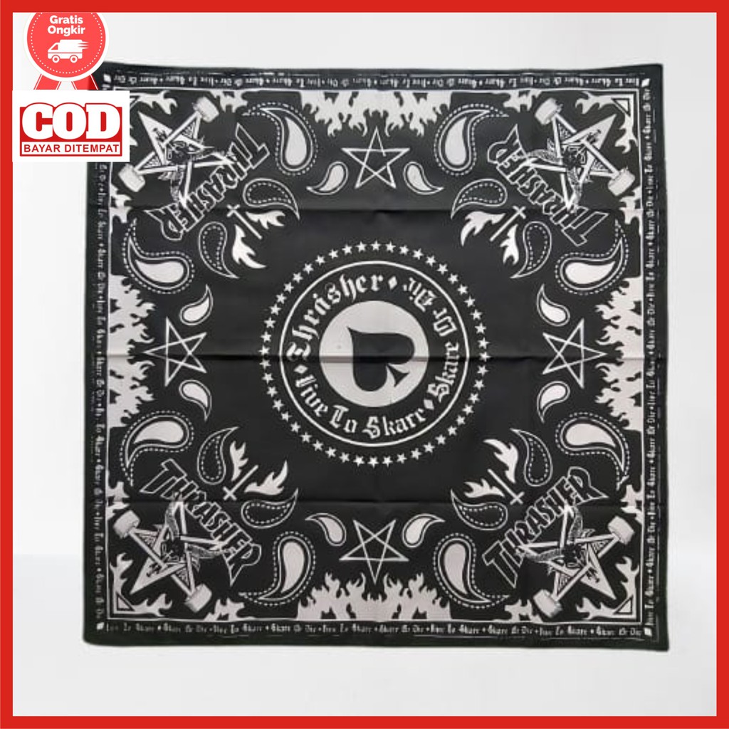 Slayer Bandana Pria Motif Polos Retro Band Tengkorak Hitam Segitiga Slayer Kepala Pria Motorhead