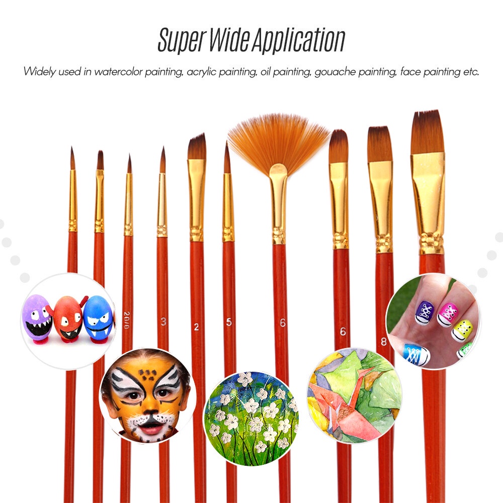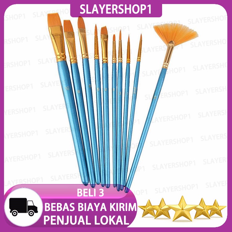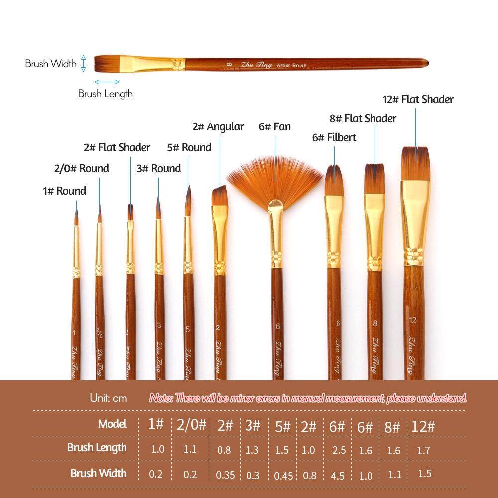 Slayershop 10/6 Buah Set Kuas Lukis Kit Kuas Artis Beberapa Kuas Media dengan Rambut Nilon untuk Akrilik Aquarelle Cat Air Lukisan Minyak Guas untuk Perlengkapan Menggambar Seni Besar