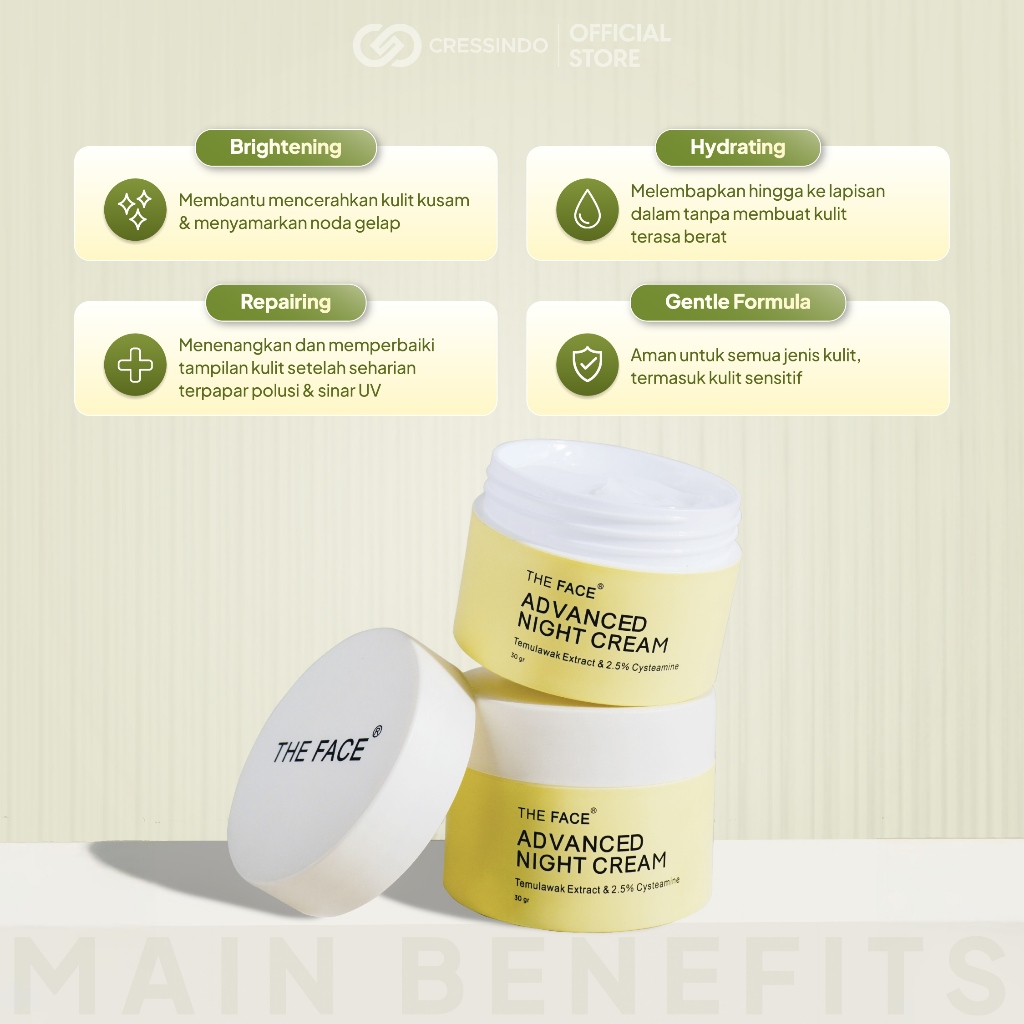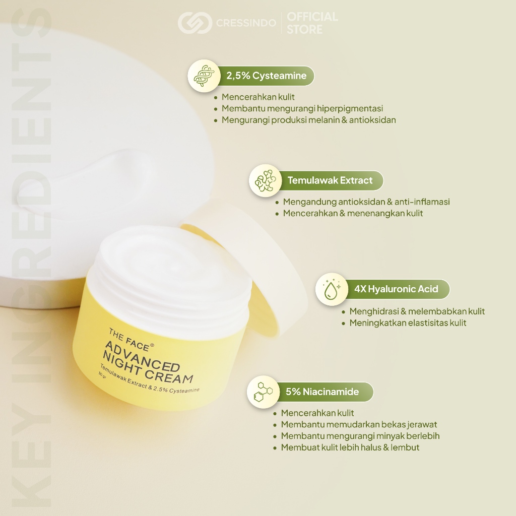 THE FACE Cysteamine Advanced Night Cream 30gr With 4X Hyaluronic Acid | Membantu Merawat Kulit Wajah Cerah Bercahaya