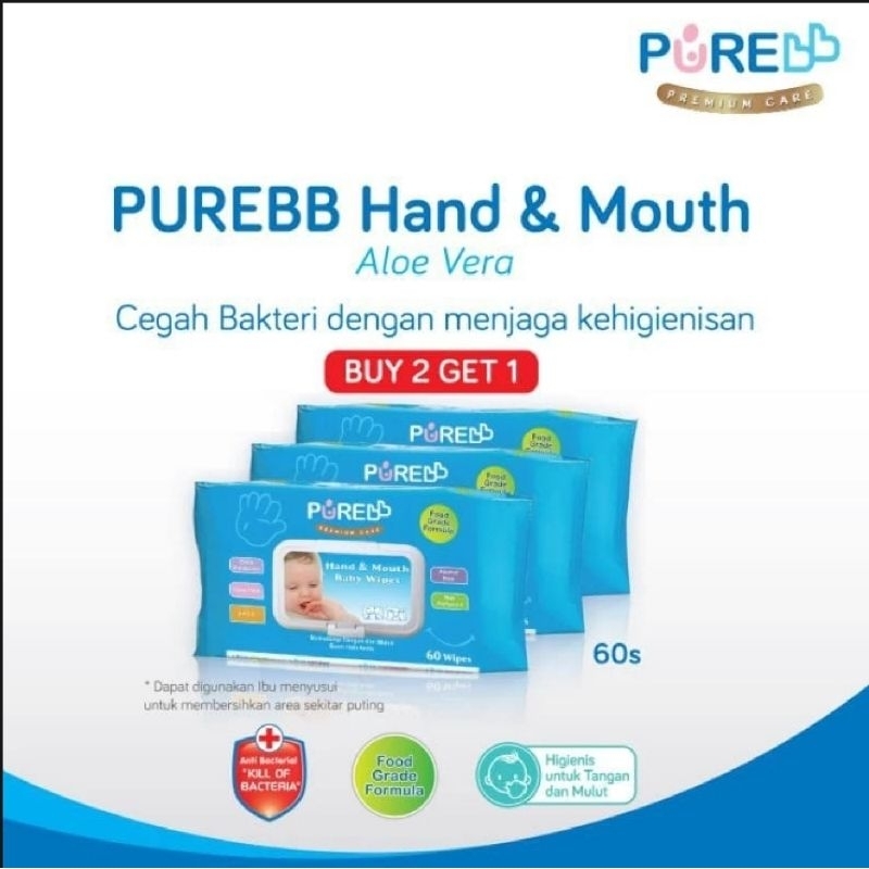 PUREBABY HAND & MOUTH Tisu Basah BABY WIPES 60s BUY 2 GET 1 FREE/TISSUE/PURE BABY/tisu basah