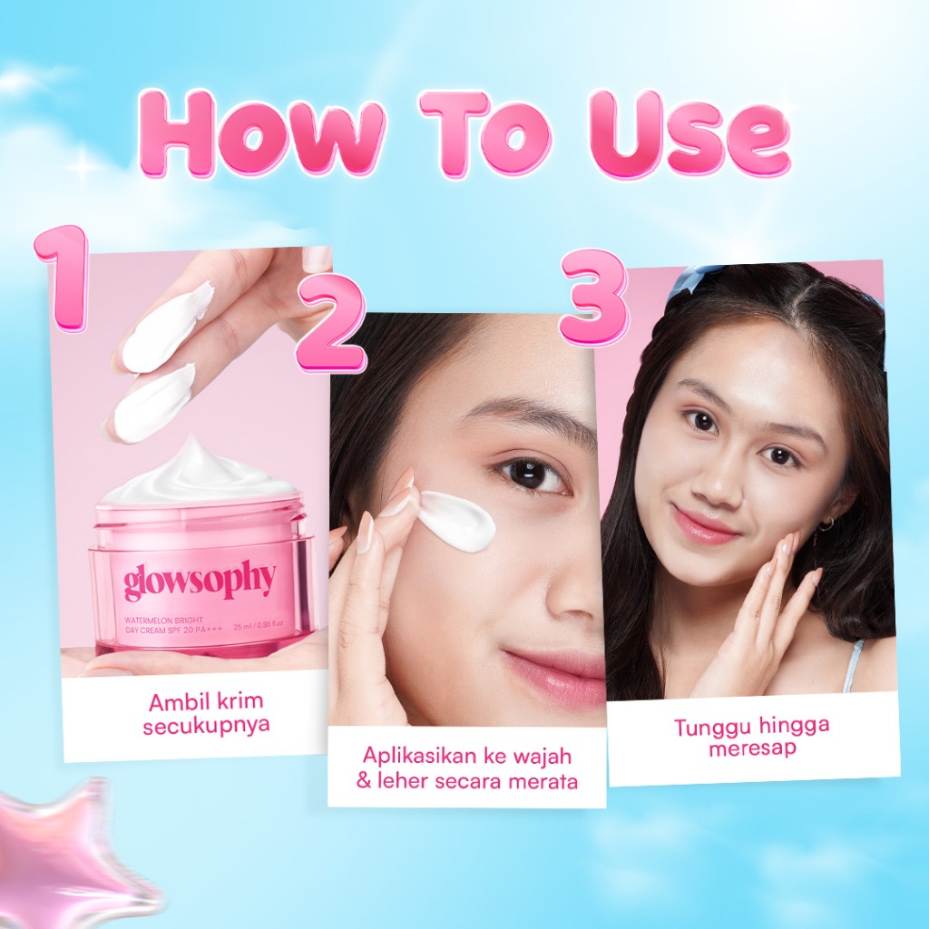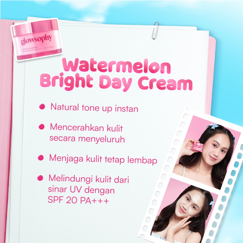 Glowsophy Watermelon Bright Day Cream - SPF 20 PA+++, Krim Muka Siang Cerah & Lembap 3in1 All-Day Glow