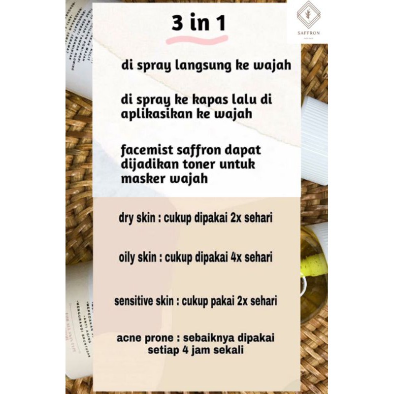 FACEMIST SAFFRON WITH ROSE WATER 100ML BPOM (Bisa Di jual Kembali)