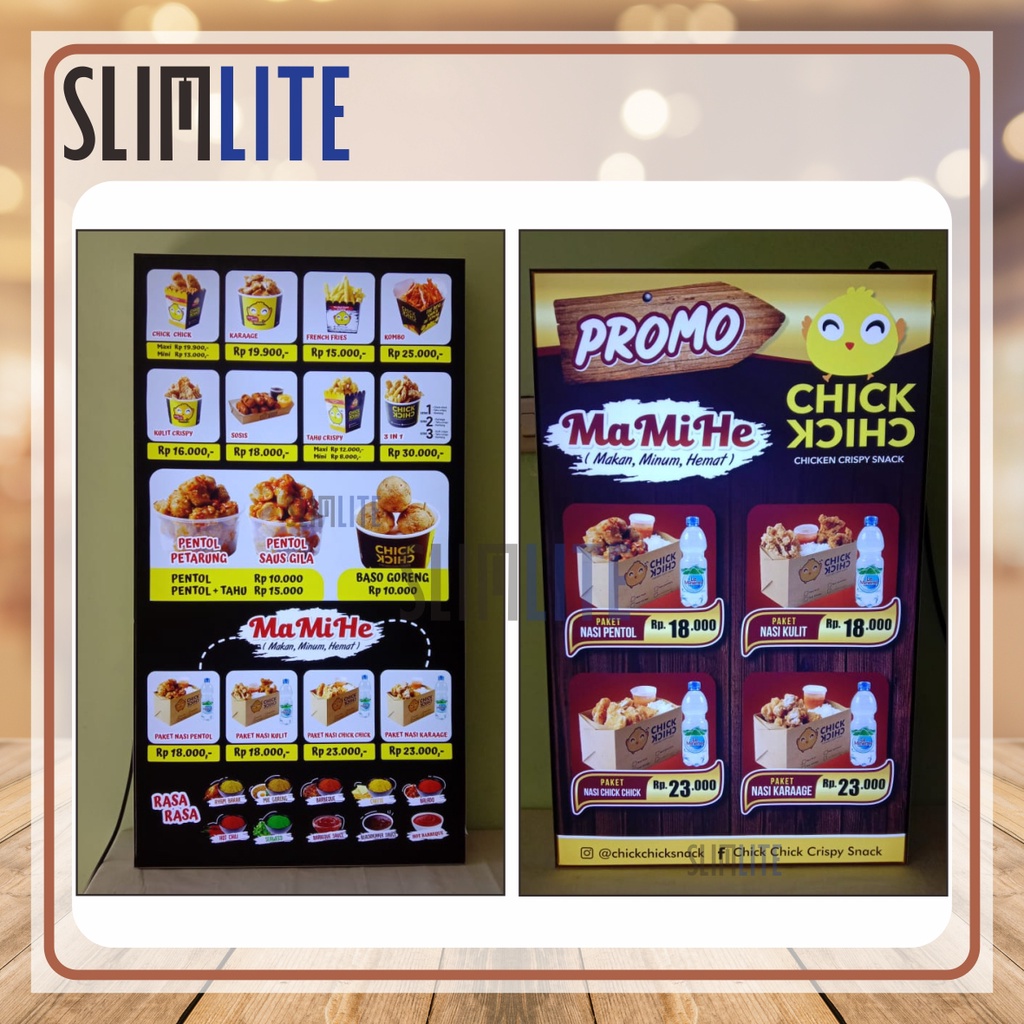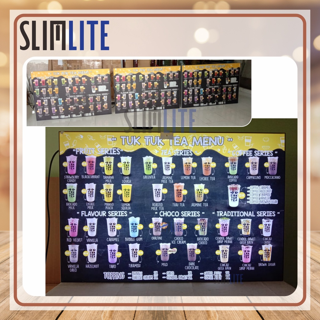 Slim Light Box Ukuran 40x80cm - LED Neon Box Reklame - Alat Promosi Menu - LED Menu Cafe - Proyektor Menu