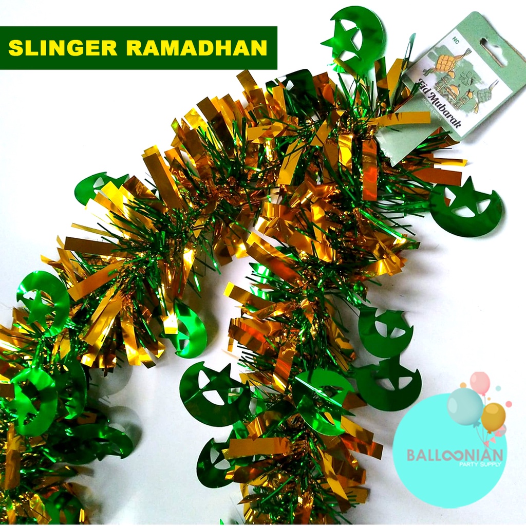 Slinger Bulan Bintang Hijau/Slinger Idul Fitri/Hiasan Lebaran/Dekorasi Ramadhan