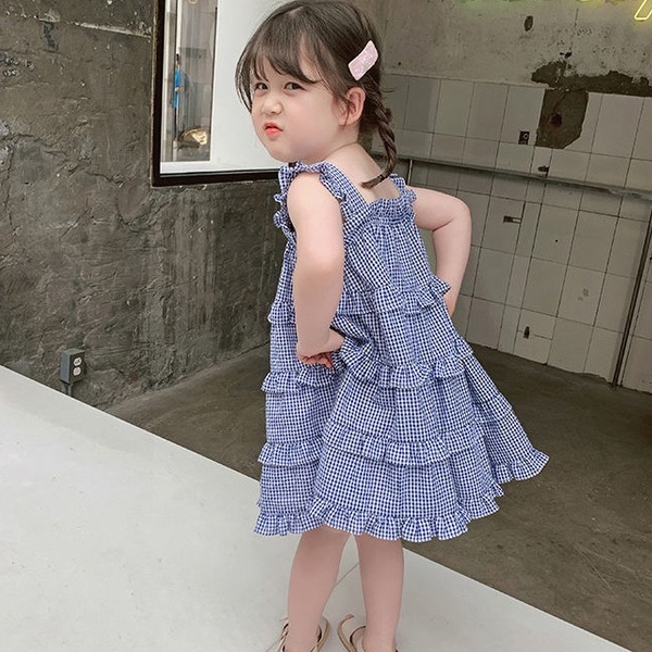 Slip Dress Anak Perempuan Rok Kotak-kotak Rok Bayi Gaun Anak Musim Panas