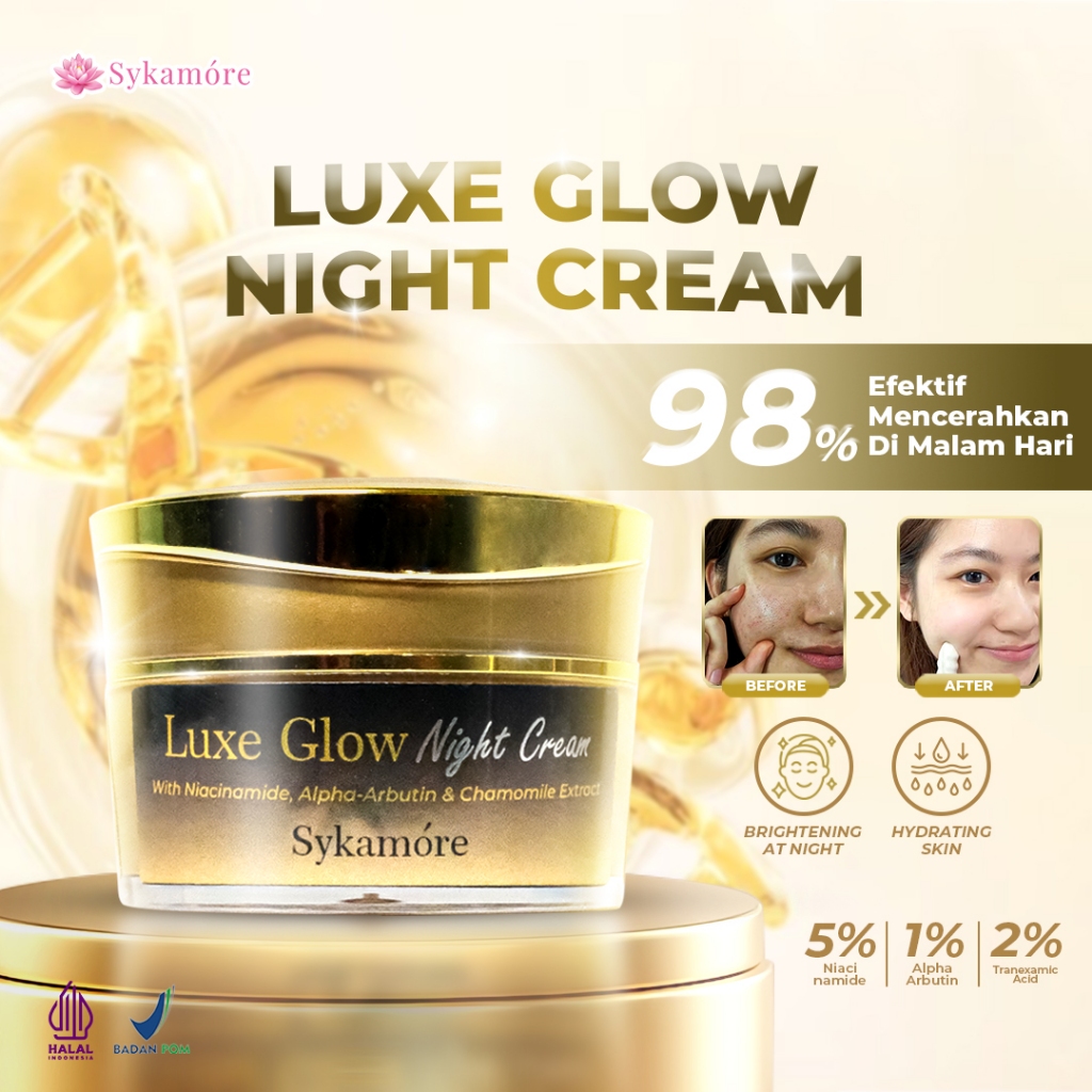 Sykamore Night Cream Glow Flek Wajah | Gold Series Luxe Glow Night Cream