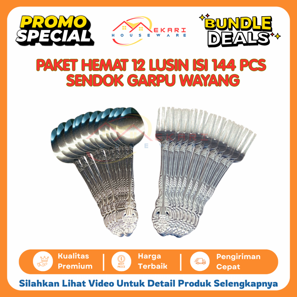 12 LUSIN ISI 144 PCS Sendok Garpu Makan Stainless Wayang Tebal