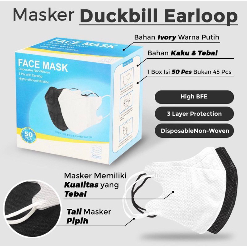 Masker Duckbill 3 Ply Isi 50 Pcs Face Mask Earloop Disposable