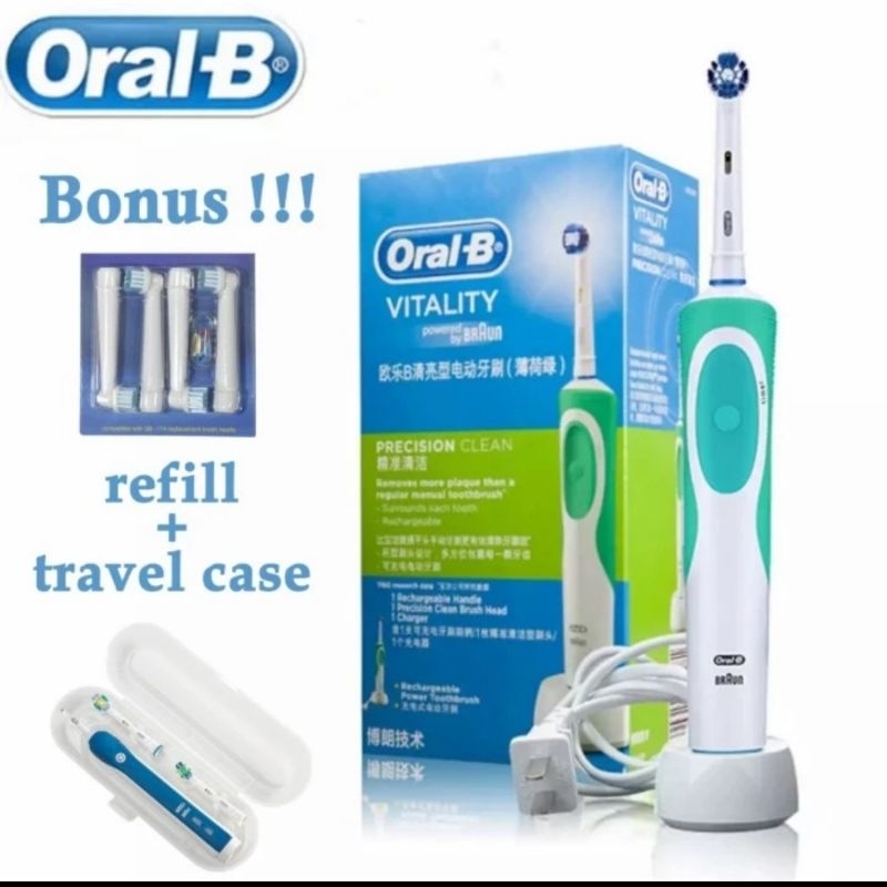 Sikat gigi elektrik Oral B rechargeable + refill + travel case