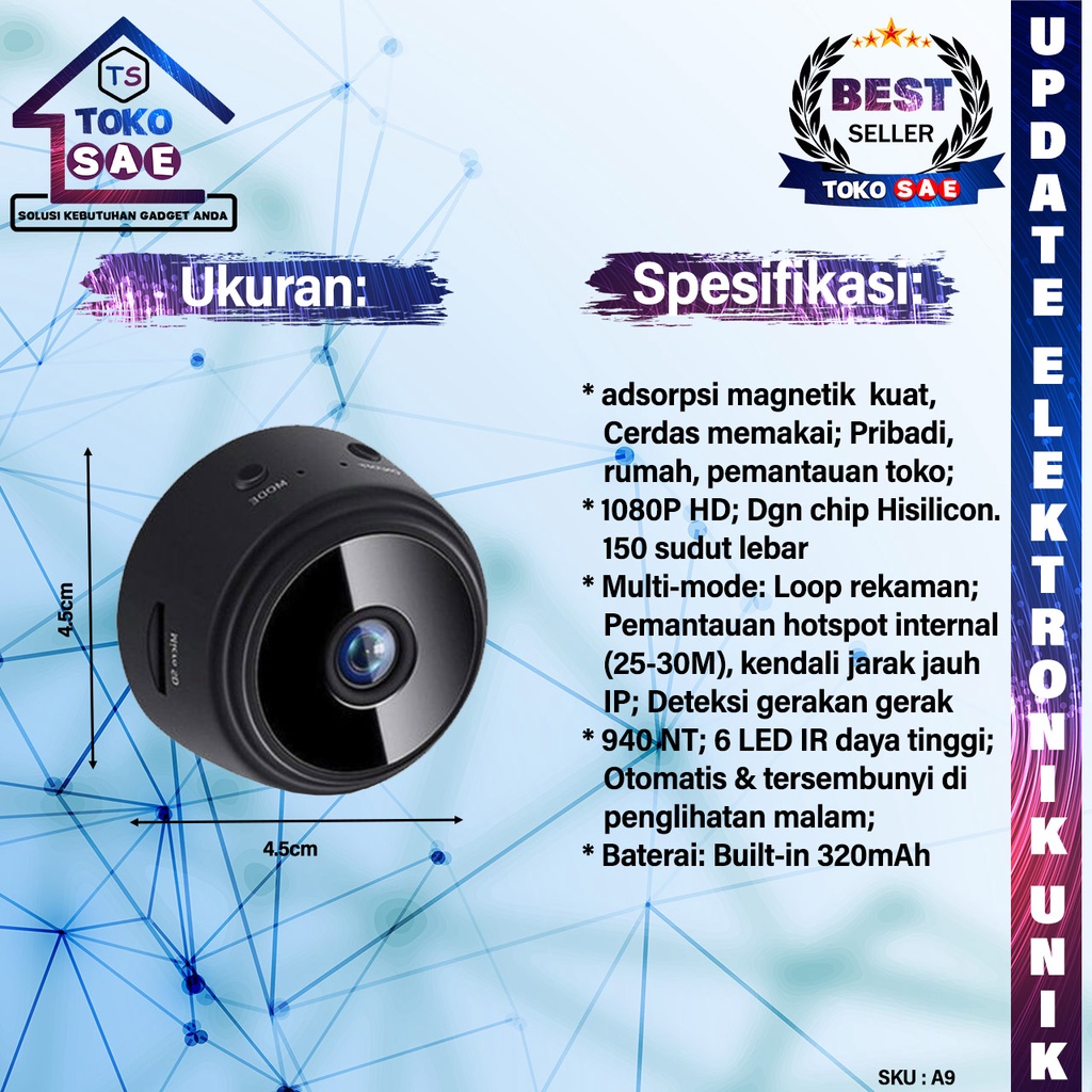 Small Lens Spy Camera A9 WiFi Hidden Cam Wireless HD 1080P Wifi Kamera Pengintai Mata mata CCTV Mini P2p Plug Play IR Infrared LED Kamera Tersembunyi Pengawas Pengawasan Keamanan Rumah Security Cam Spycam Camera Kecil Murah Original