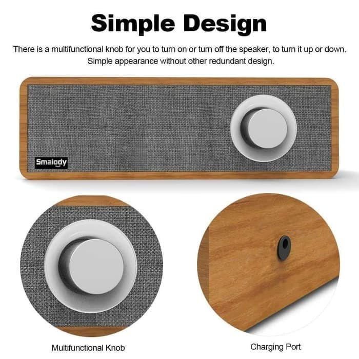 Smalody Wooden Bluetooth Speaker Stereo Soundbar