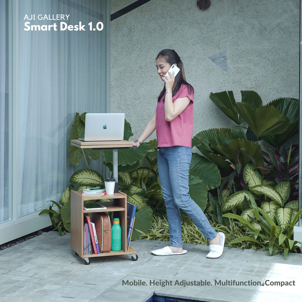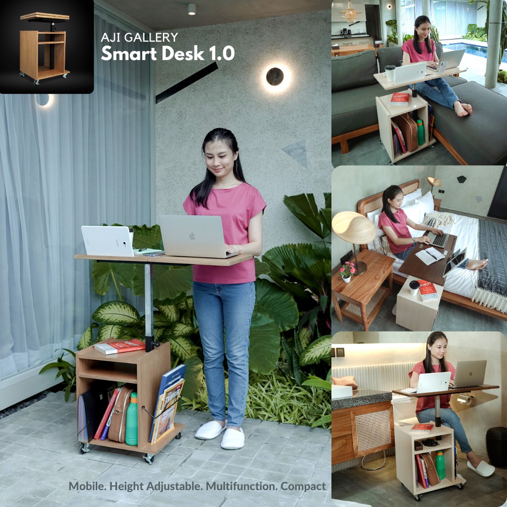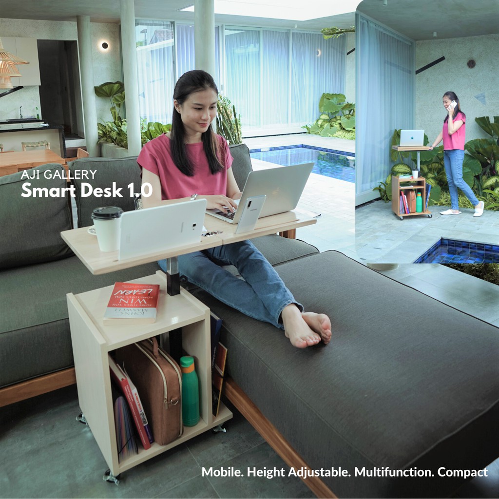 Smart Desk Standing Meja Kerja/Belajar/Makan Lipat Beroda Multifungsi Portable Moveable Furniture
