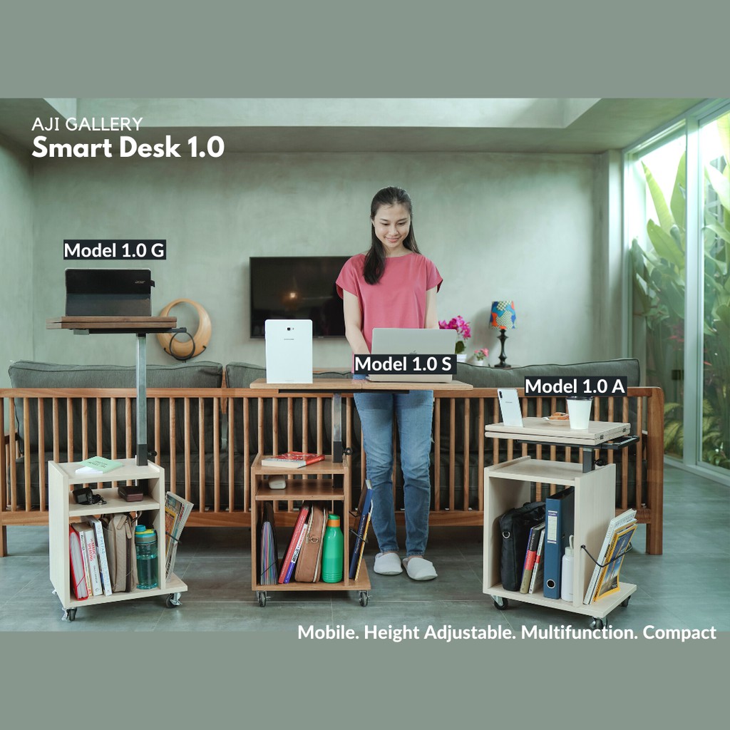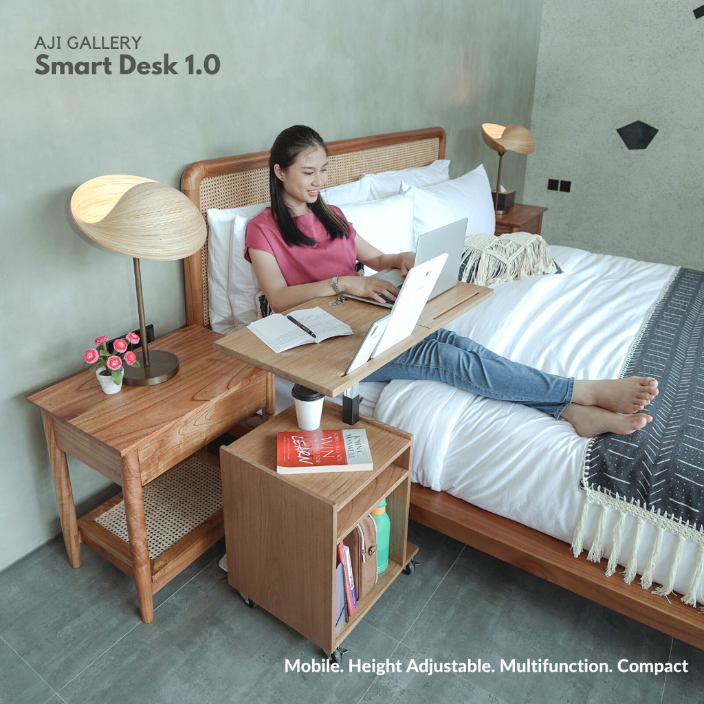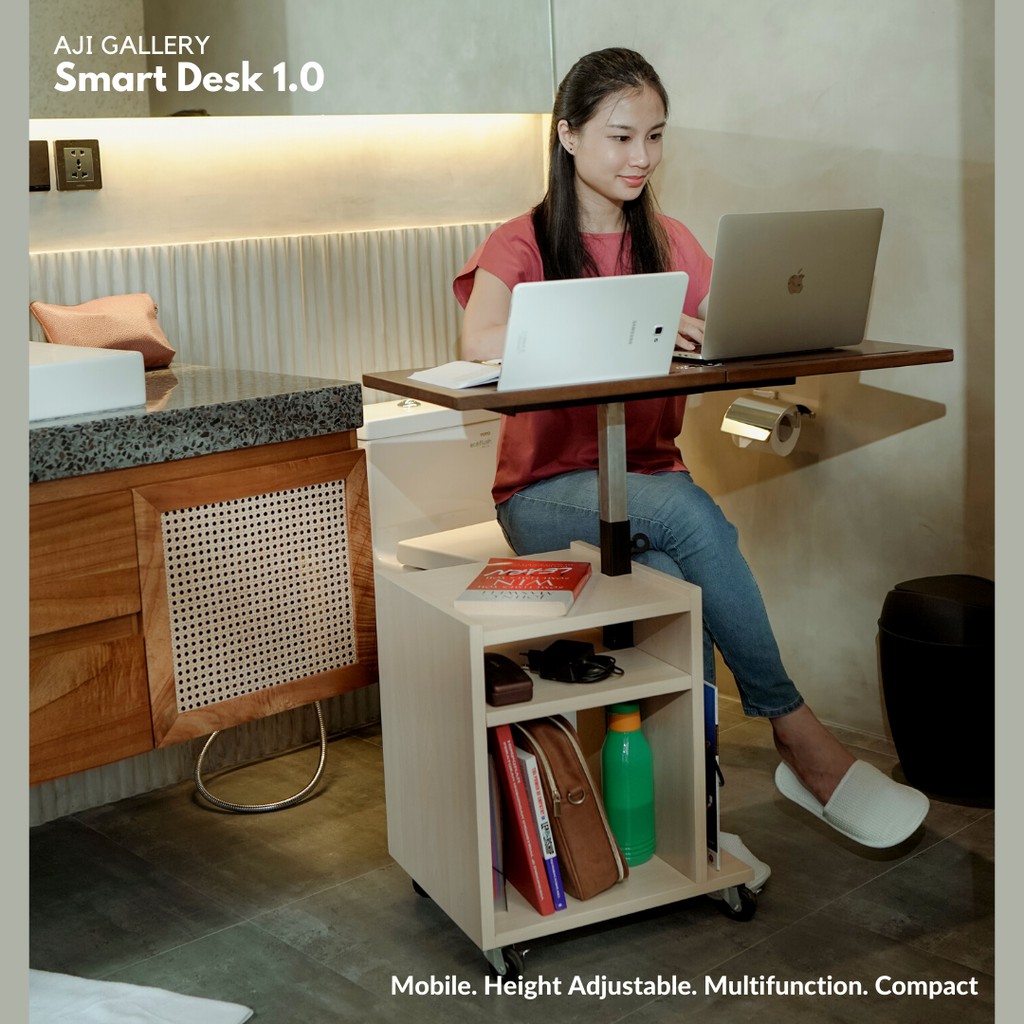 Smart Desk Standing Meja Kerja/Belajar/Makan Lipat Beroda Multifungsi Portable Moveable Furniture