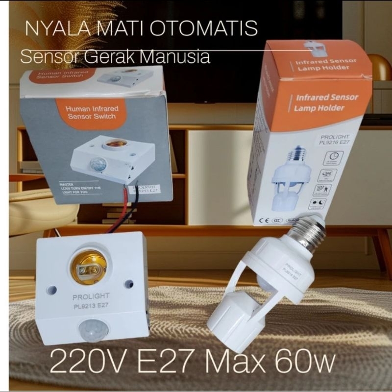 Smart Fitting Sensor Gerak Otomatis untuk lampu Bohlam dan LED E27 220v