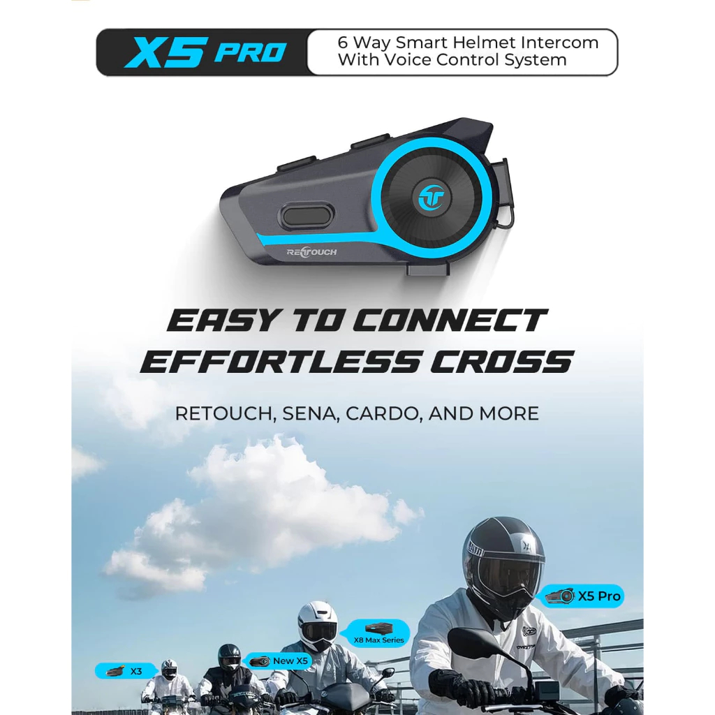 Smart Helmet Intercom RETOUCH X5 Pro Connection Helmet Communication Systems 6 riders Low latency