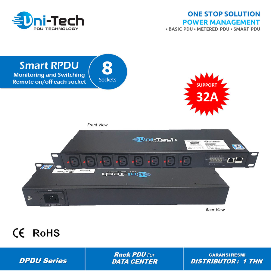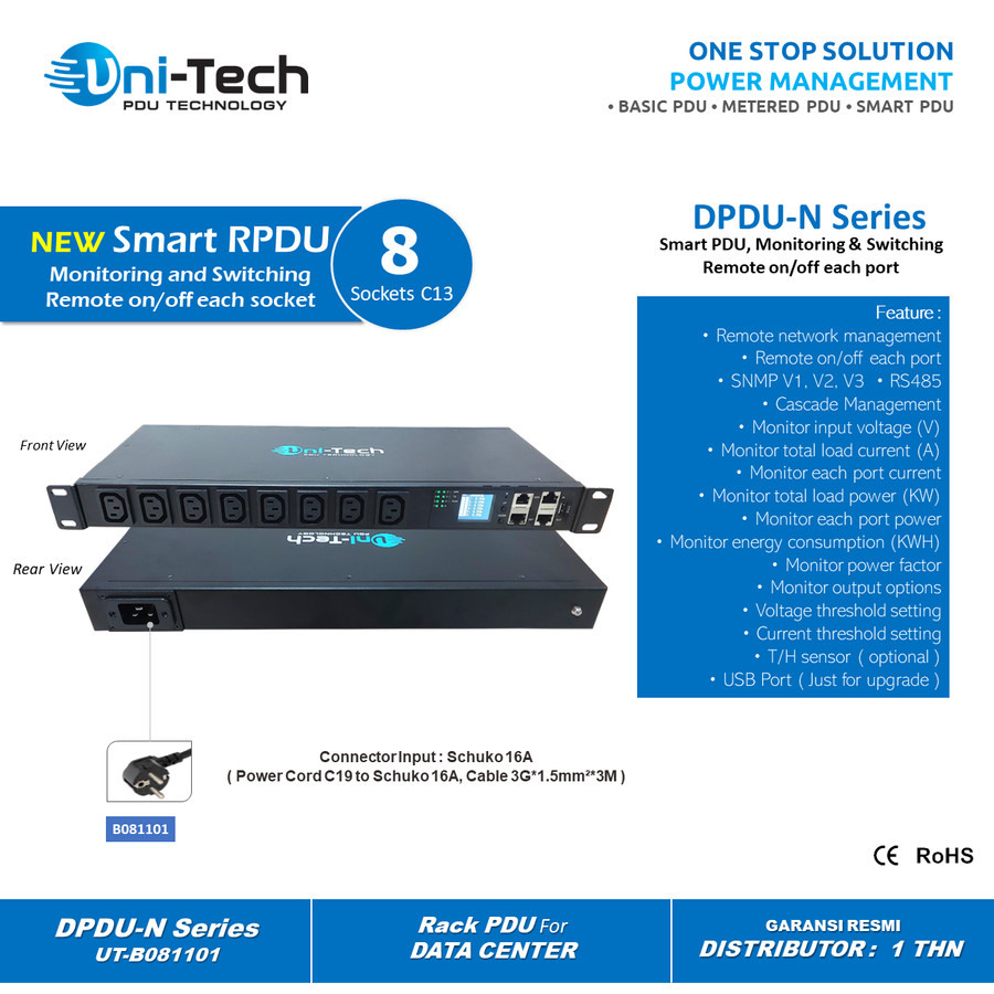 Smart PDU (DPDU-N) Monitoring and Switching, Remote On Off Each Socket, 8 Outlet / Holes / Port Socket C13, With Optional Connector Input - PDU ( POWER DISYTRIBUTION UNIT ) FOR RACK SERVER
