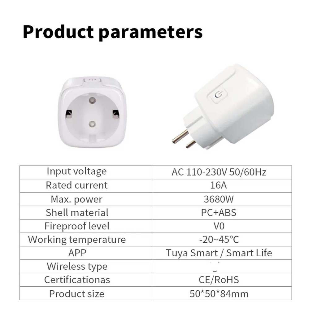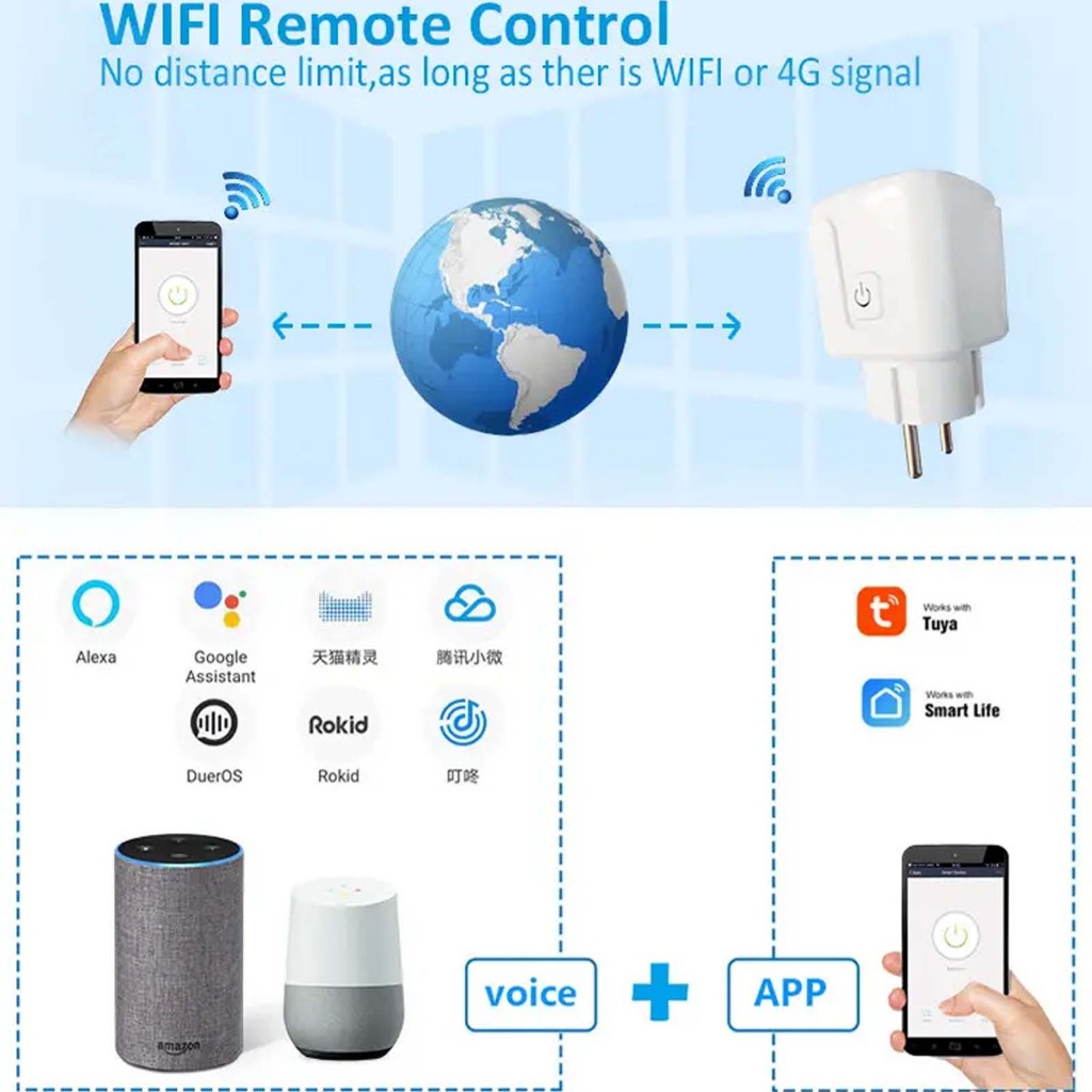 Smart Plug App Tuya Wireless Wifi Sockets Remote Control Outlet with Timing Function,/ Colokan listrik 220V 16A otomatis dan manual control IOT home automation w/ power monitor