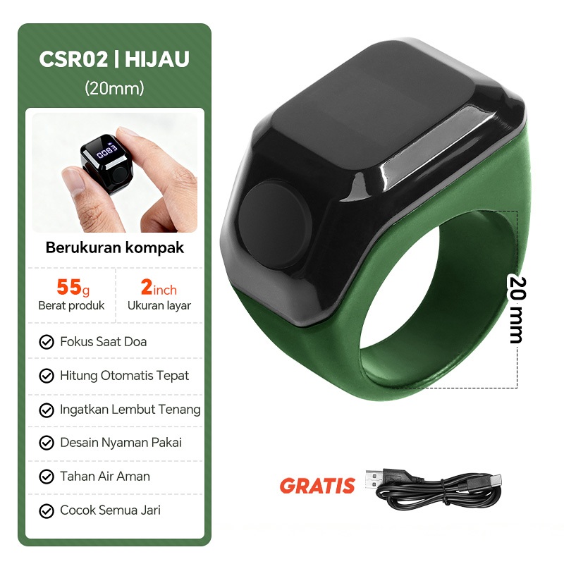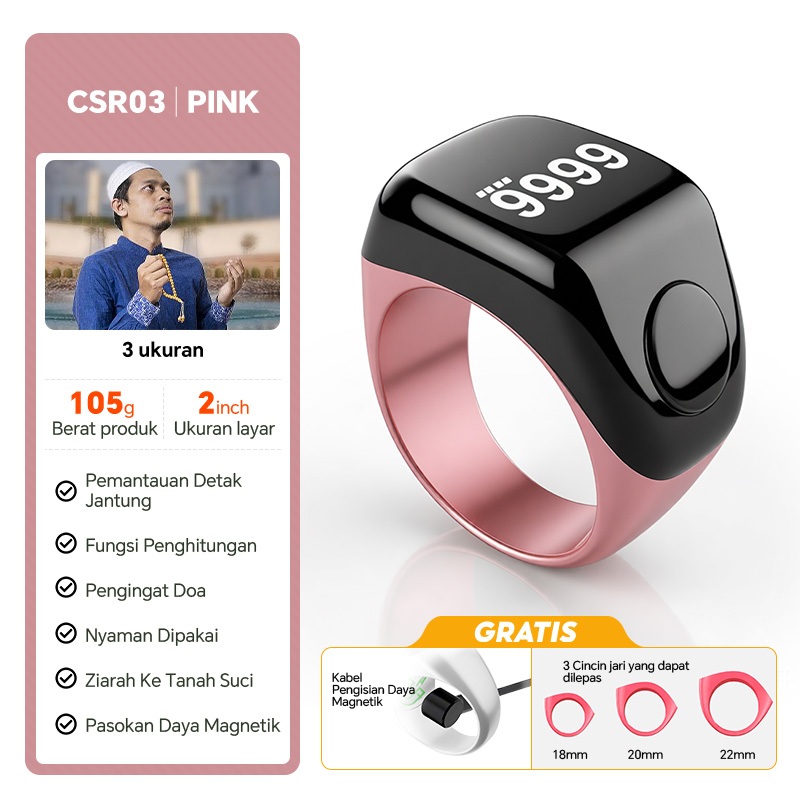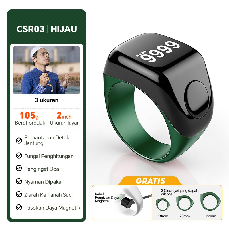 Smart Tasbih Counting Ring/Cincin Tasbih Digital-Hitung Zikir Otomatis Cincin pemantau detak jantung dan tekanan darah Pedometer Bluetooth