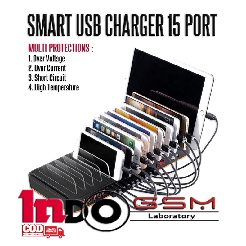 Smart USB Charger 15 Port Adaptor Charger USB FAST SMART CHARGING STATION TERMINAL CAS 15 COLOKAN