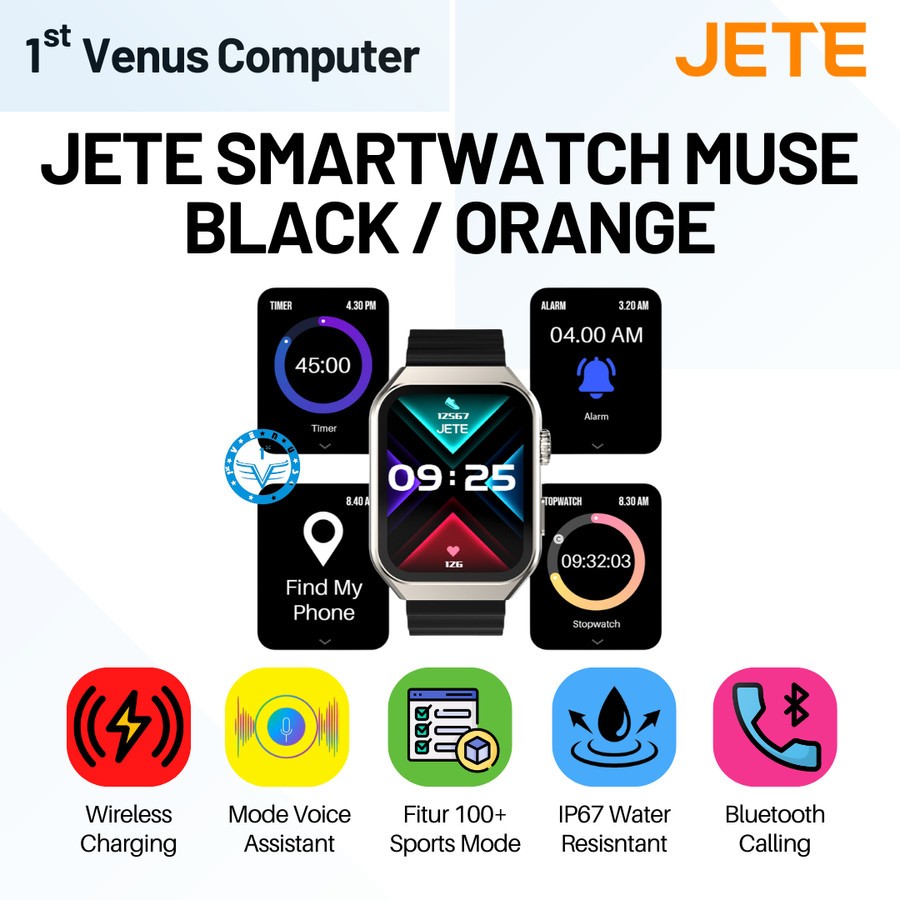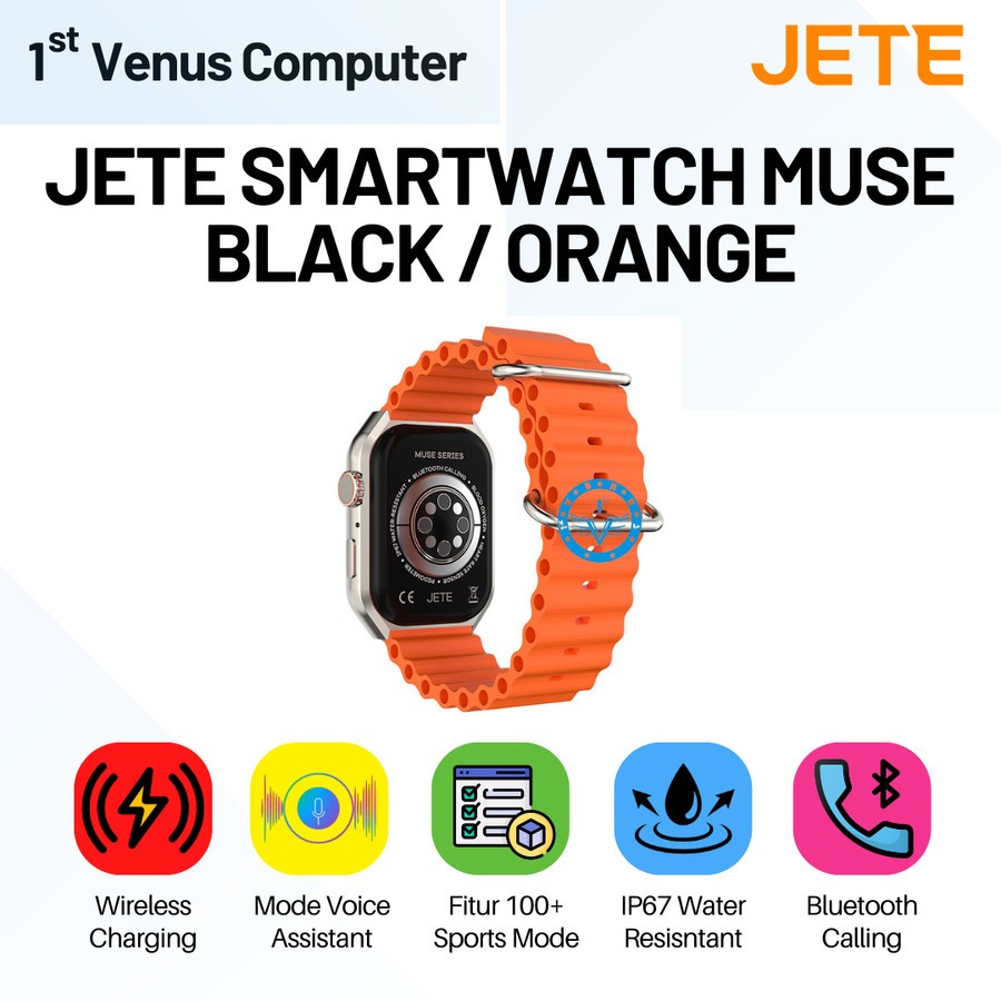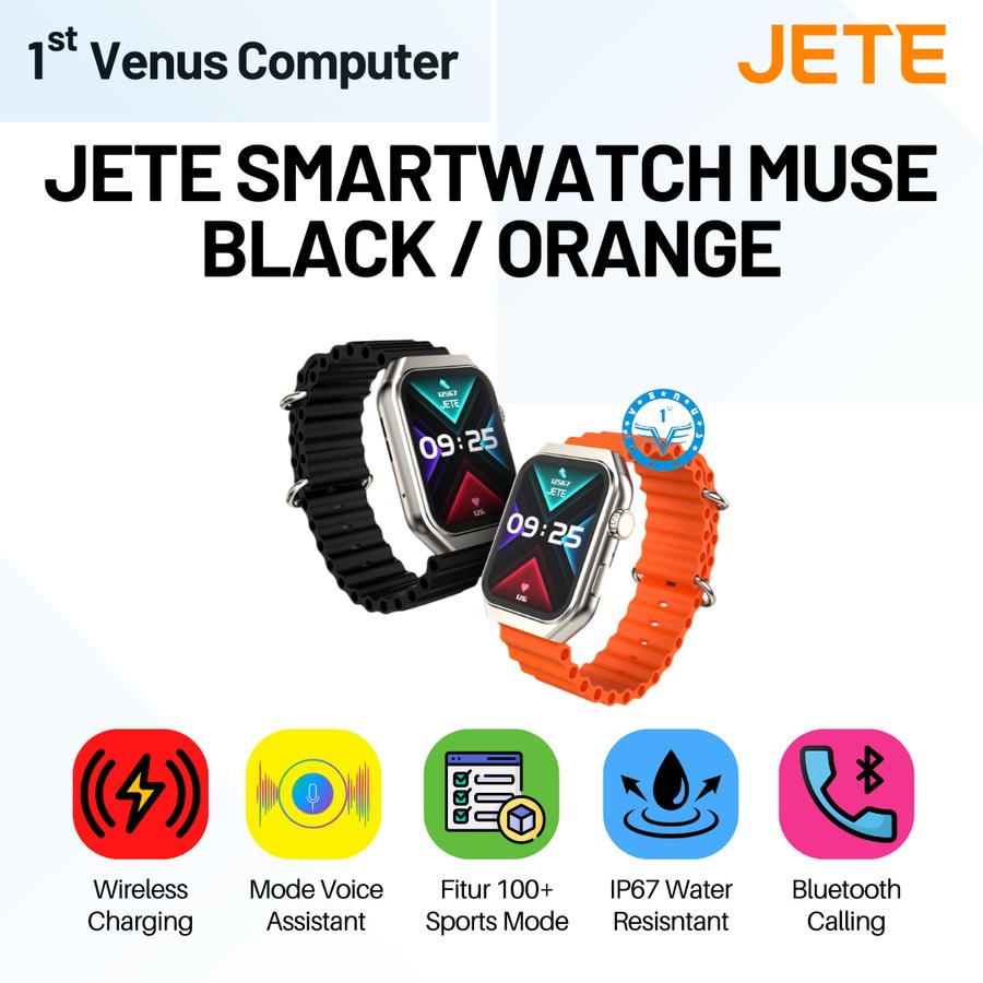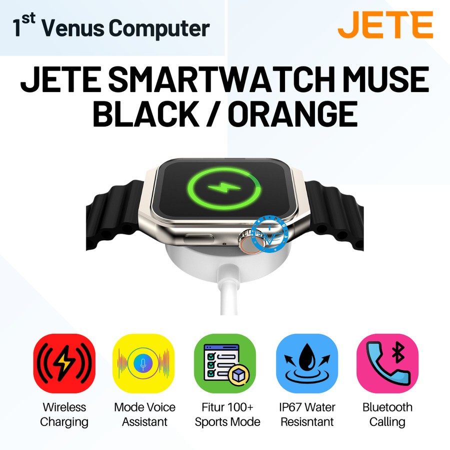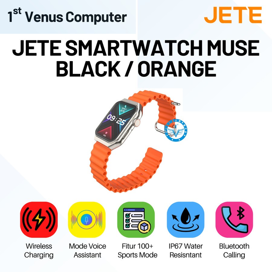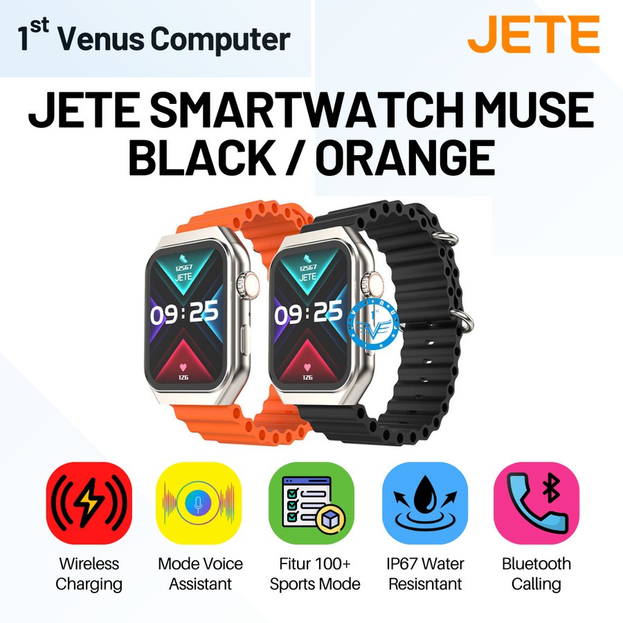 Smartwatch JETE Muse Sport Mode 100+ with IP67 Wireless Charging Balck / Orange - Garansi Resmi 2 Tahun