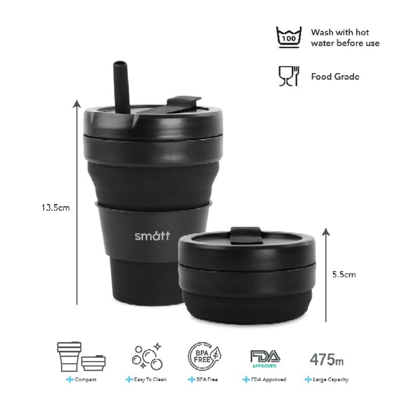 Smatt Foldable Cup Silicone, Tumbler gelas lipat utk kopi, tahan panas, Praktis dibawa kemana saja, keren, trendy Kuat