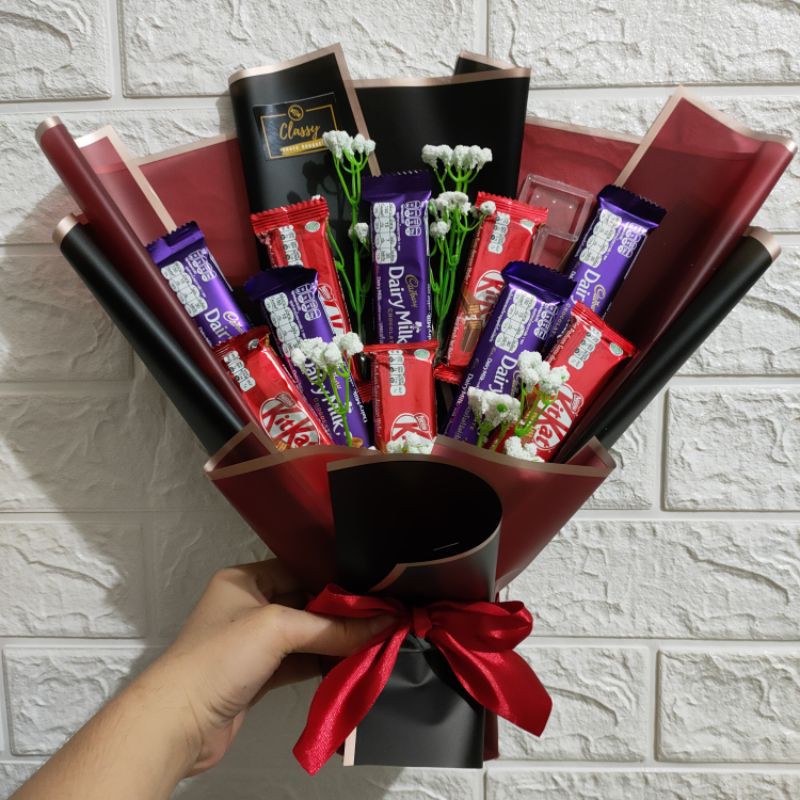 Snack Bouquet Coklat Cadbury / Kitkat / Bucket Bunga Buket Snack Jajan / Hadiah Sidang/ Wisuda