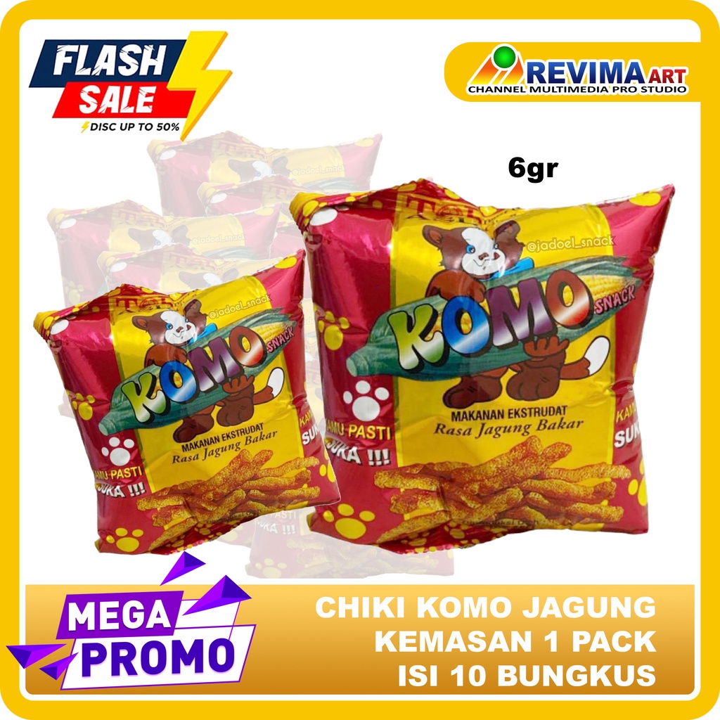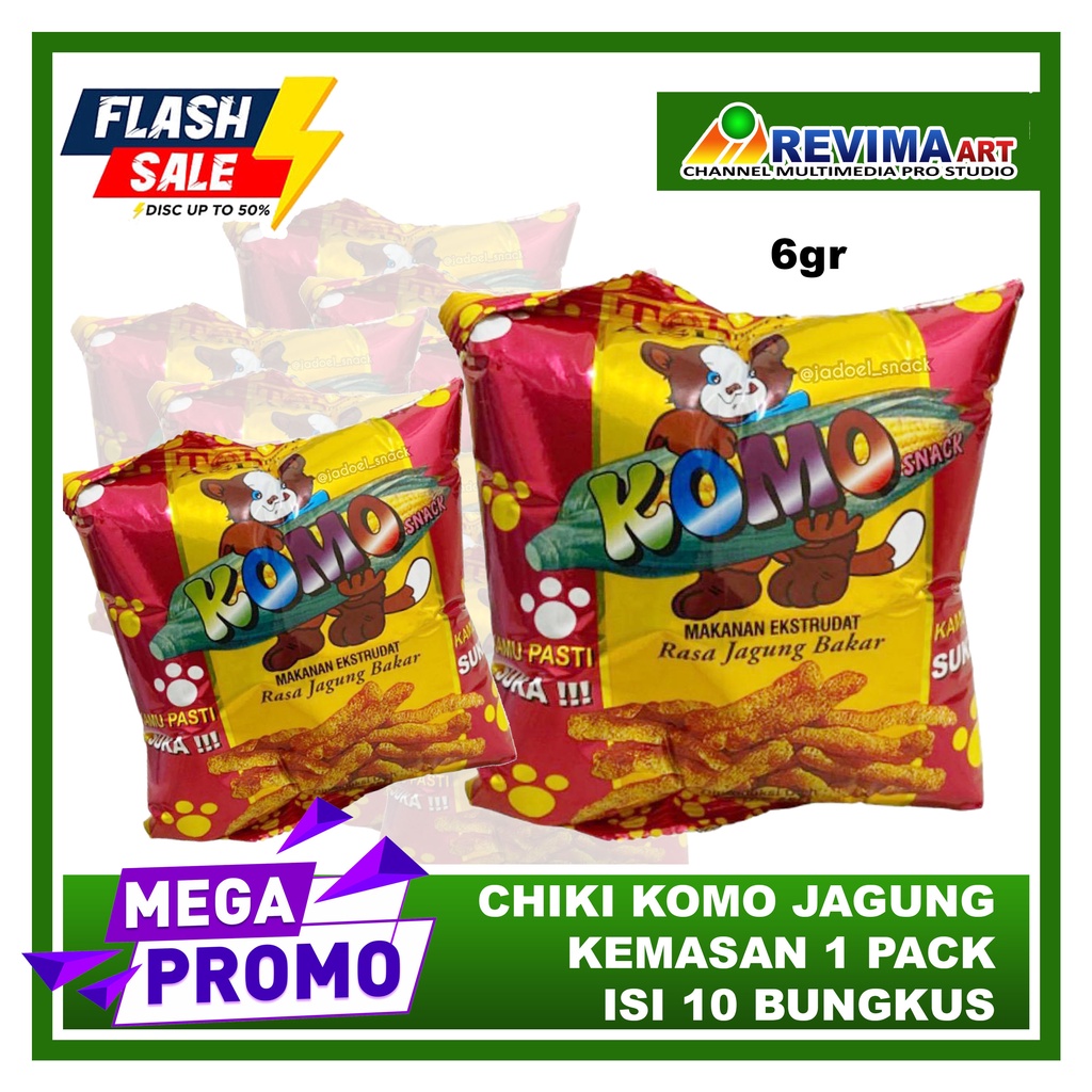 Snack Ciki KOMO Rasa Jagung Bakar, Kemasan 1 pack isi 10 Bungkus