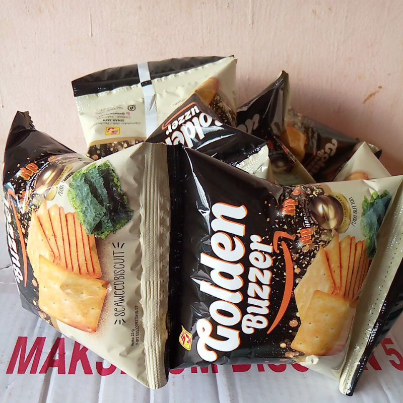Snack GOLDEN BUZZER Isi 10 x 30 Gr Seaweed Saltcheese Crackers Biscuits Salt Cheese 300 Gram Biskuit Rumput Laut Berhadiah Uang Emas Favorit Keluarga