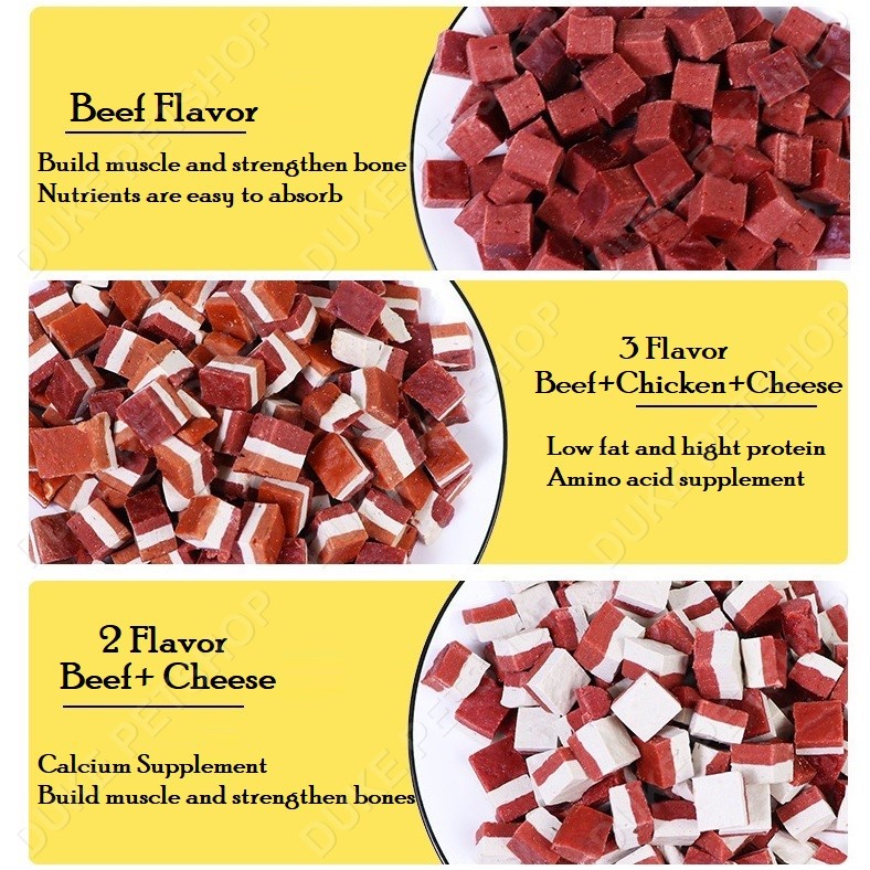 Snack anjing Snack Hewan Peliharaan Snack Kucing Cemilan Kucing 100g Ayam Bebek Daging Sapi kubus daging sapi