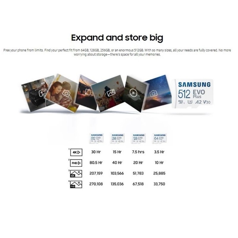 Snmsung 256GB 128GB A2 V30 Memory Card EVO Plus Micro SD Card 64GB A1 V10 High Speed UHS-I Class 10 TF Card For Camera