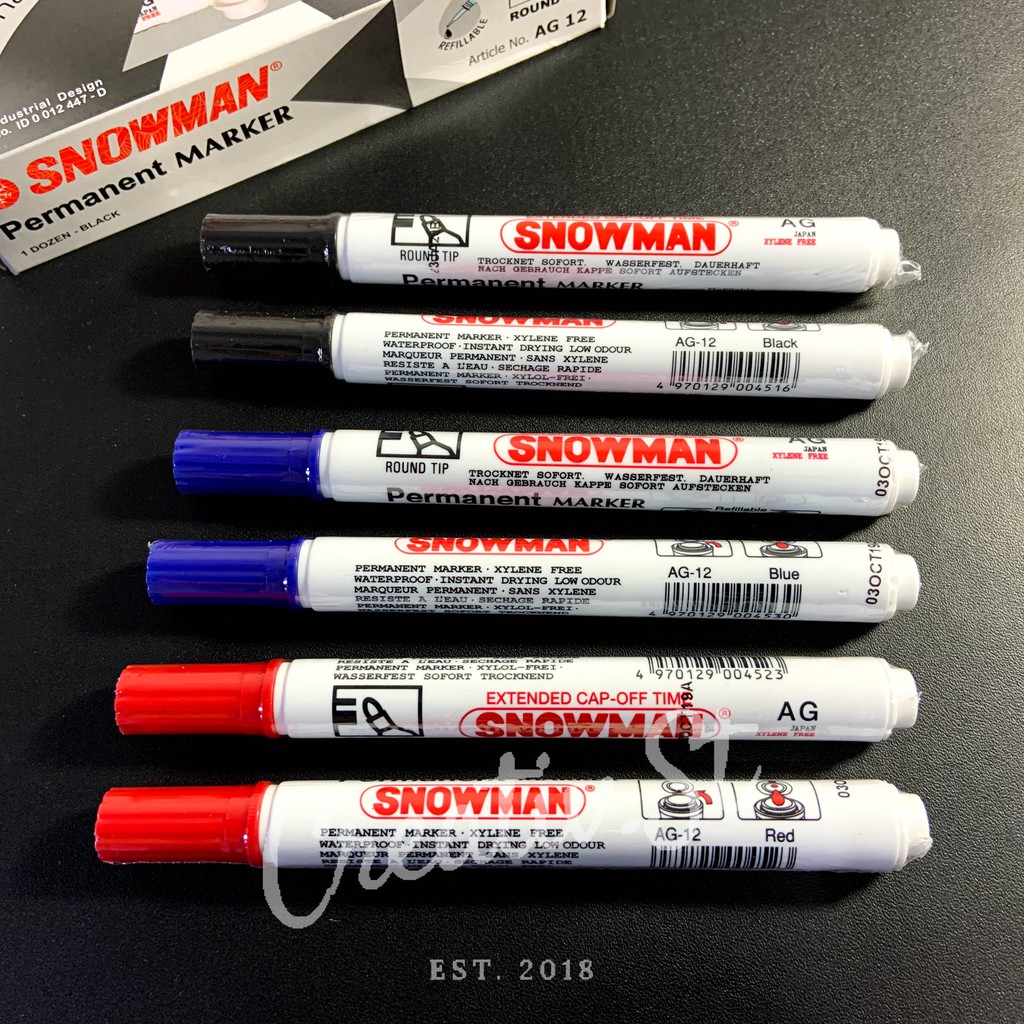 SNOWMAN Spidol Permanen Permanent Marker Ag-12 Hitam Biru