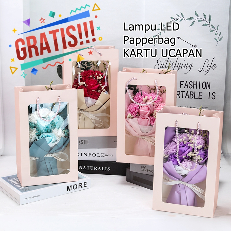 Soap Dried Flowers Bouque t/ Buket Bunga Sabun&Bunga Kering+LAMPU LED , buket wisuda, anniversary, ultah, kado unik murah pacar wedding, hari guru, hari ibu, valentine