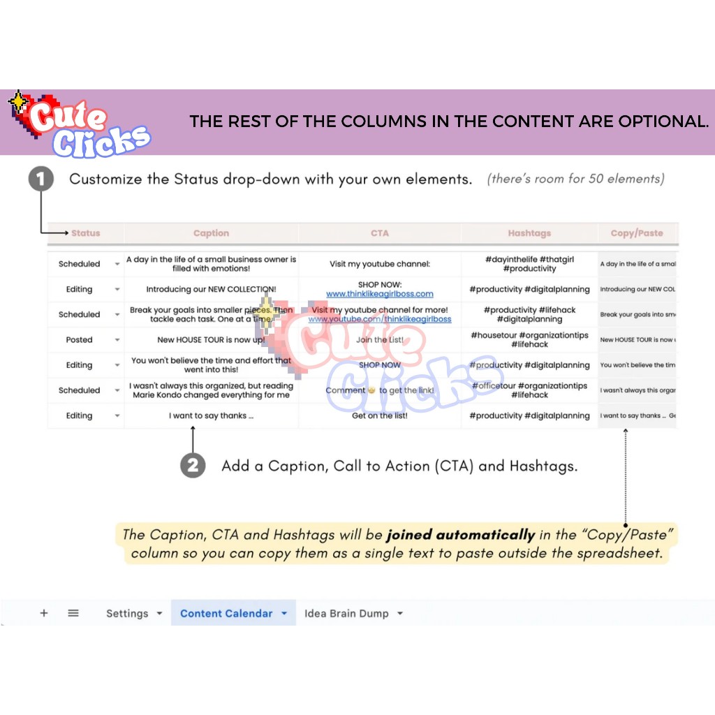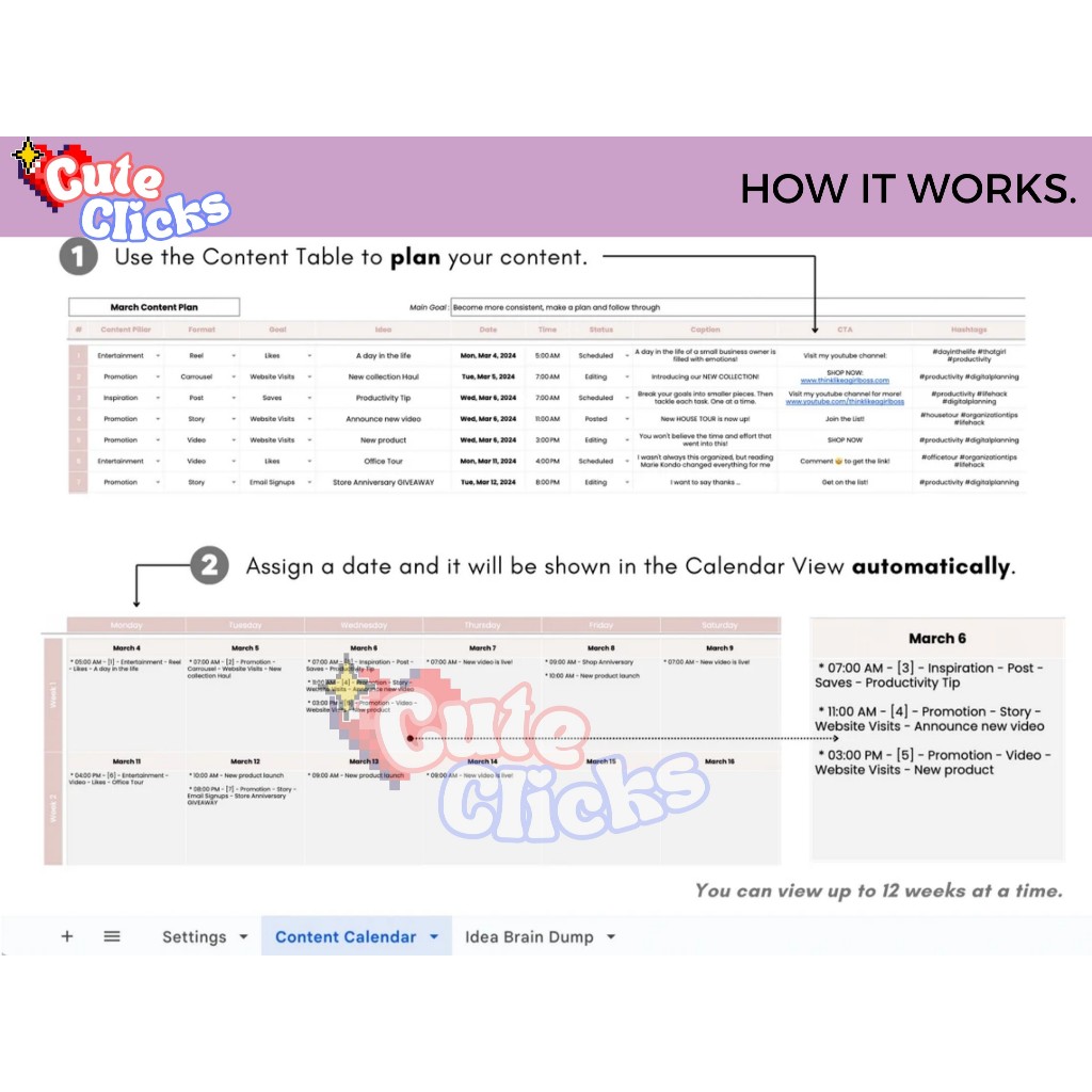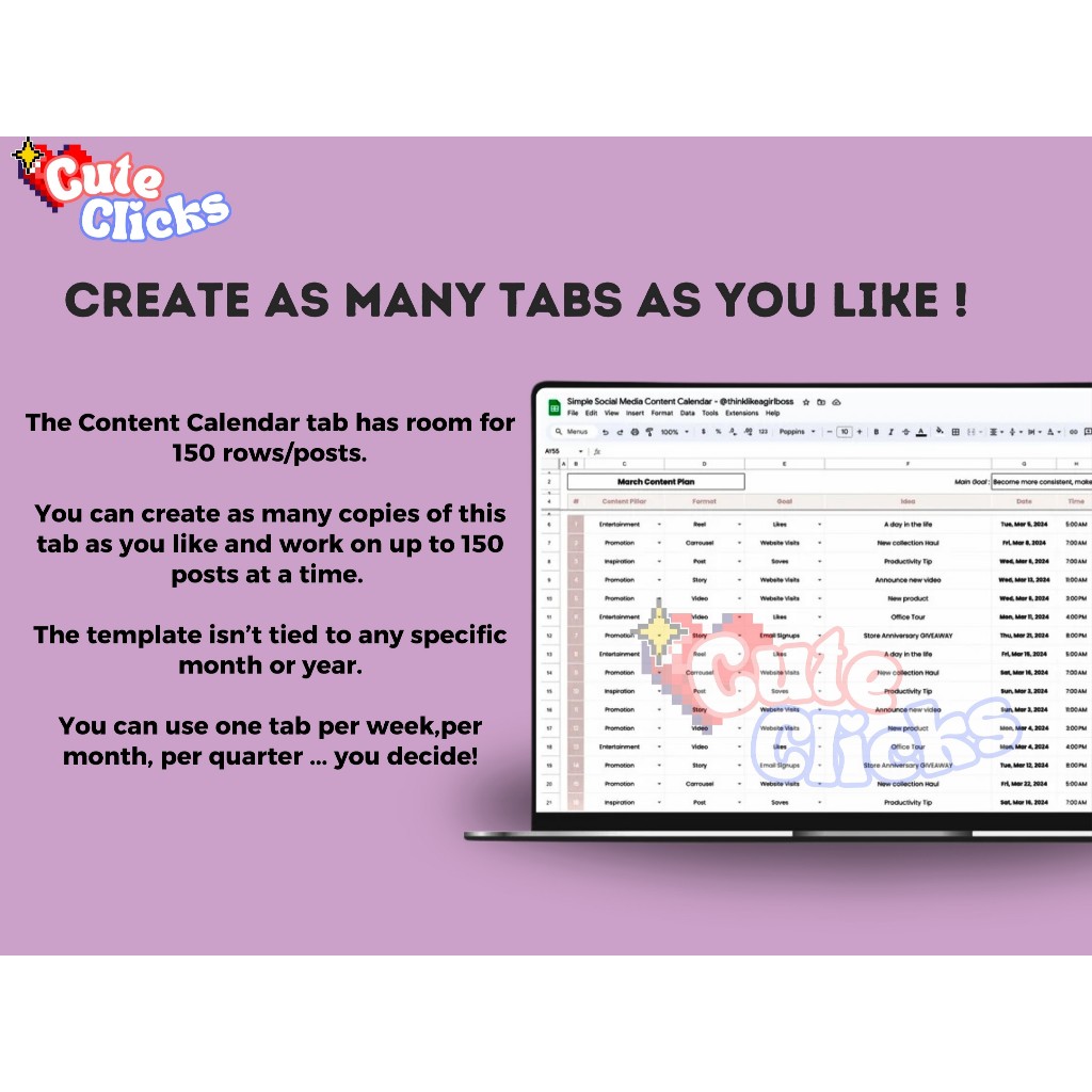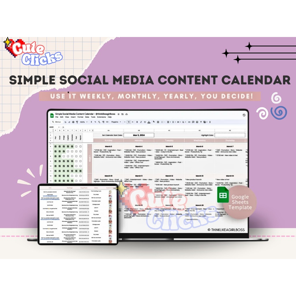 Social Media Content Calendar Marketing Planner Simple Content Calendar Template Social Media Marketing Planner - Google Sheets Spreadsheet - Template Kalender Konten Media Sosial untuk Perencanaan Marketing yang Praktis dan Efektif