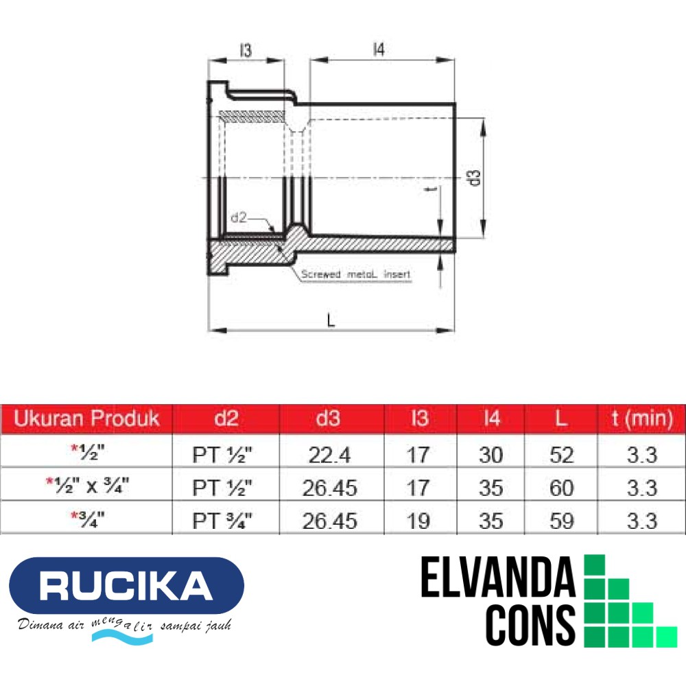 Sock Drat Dalam (SDD) Kuningan PVC RUCIKA Sambungan Kran Faucet Socket MI 1/2" 1/2 inch
