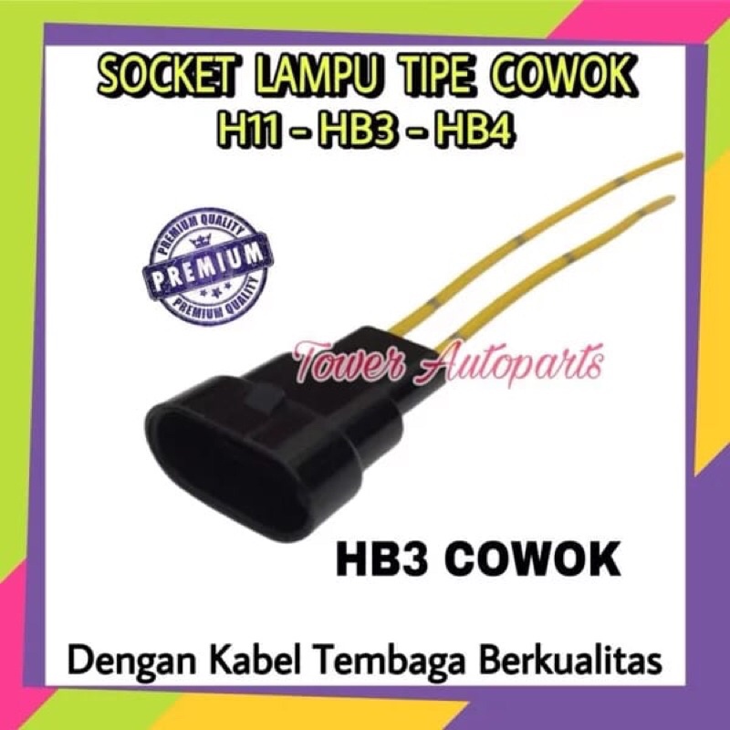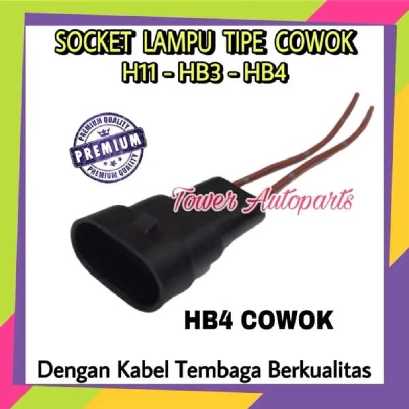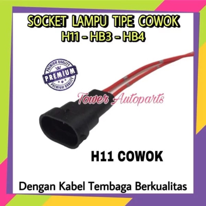 Socket Bohlam H11 / HB3 / HB4 COWOK - Soket Lampu Input Male Laki Tip H11 HB3 HB4 Dengan Kabel Bintik