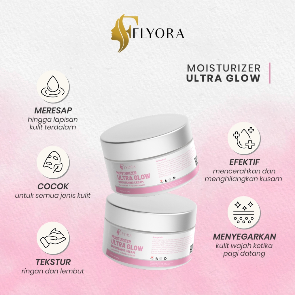FLYORA Moisturizer Ultra Glow Night Cream with Niacinamide & Hyaluronan - Melembabkan, Mengurangi Garis Halus, Anti Oksidan