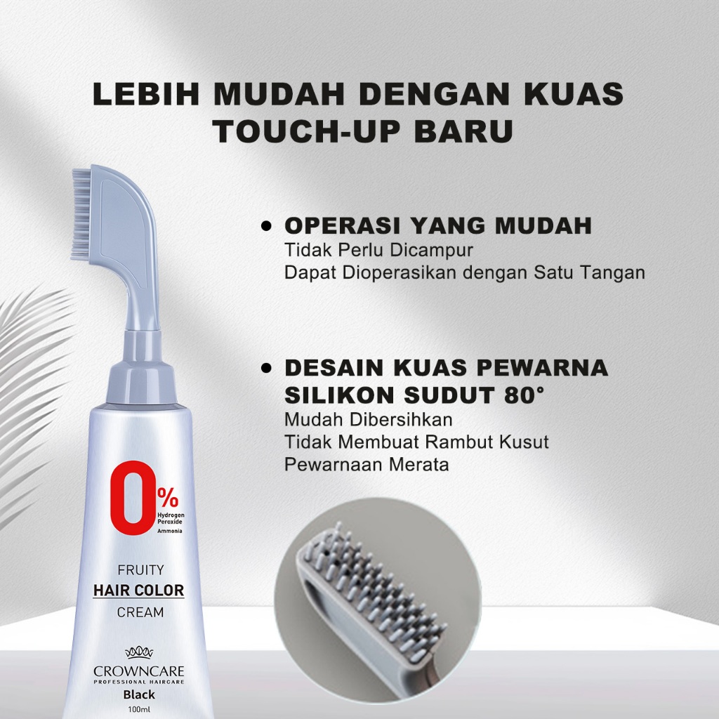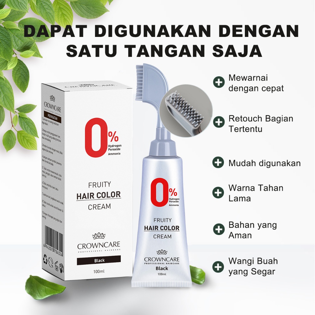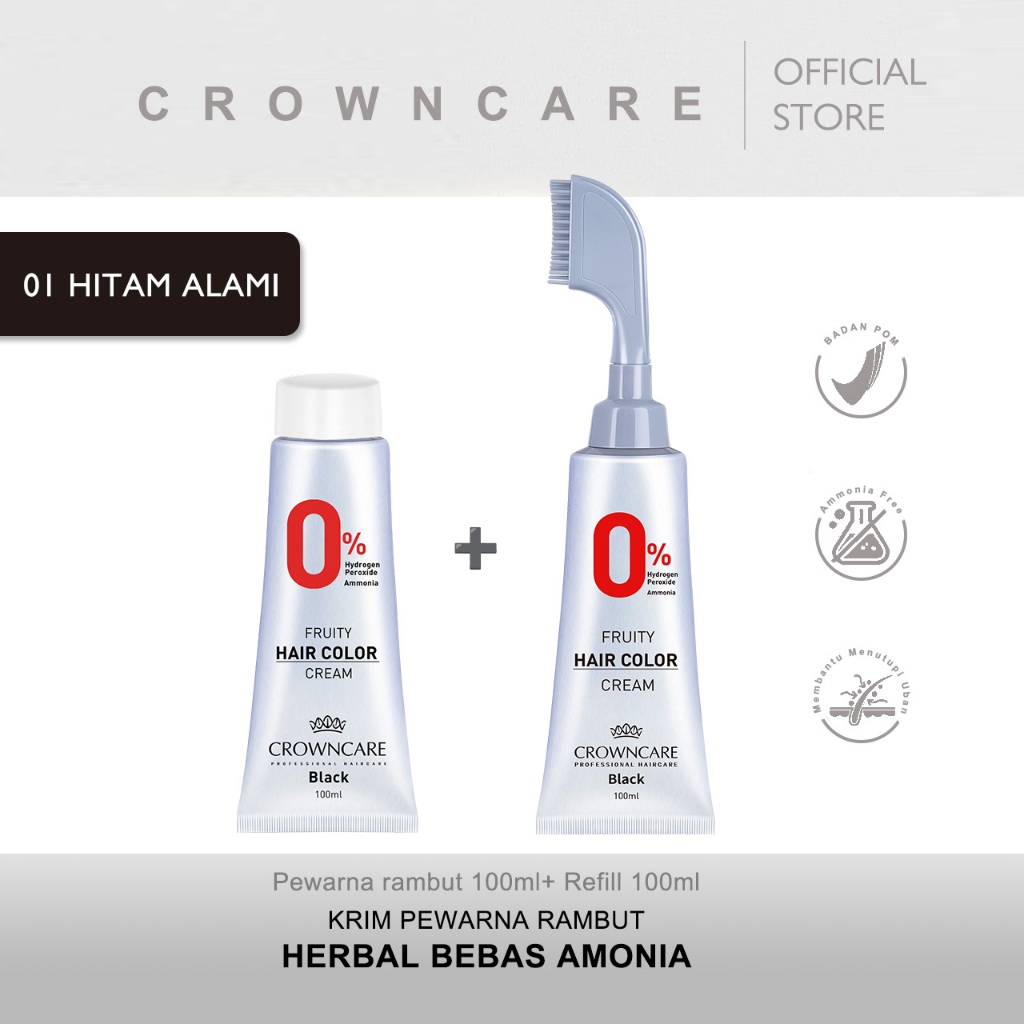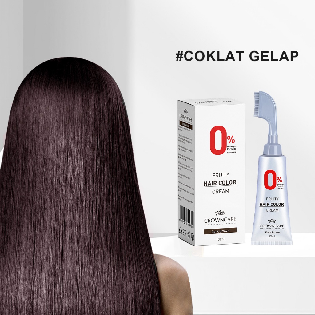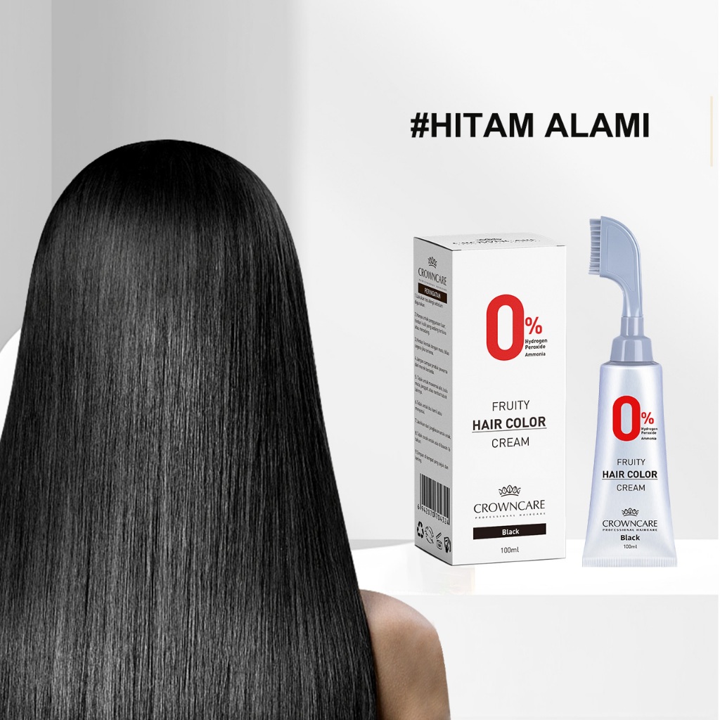 Crowncare Pewarna Rambut - Hair Coloring Cream Alami | Pewarna Rambut Ammonia Free & Anti Uban, Warna Hitam & Coklat Gelap, Aman & Tidak Berbahaya, Penghitam Rambut Herbal dengan Aroma Buah, Hasil Natural & Tahan Lama
