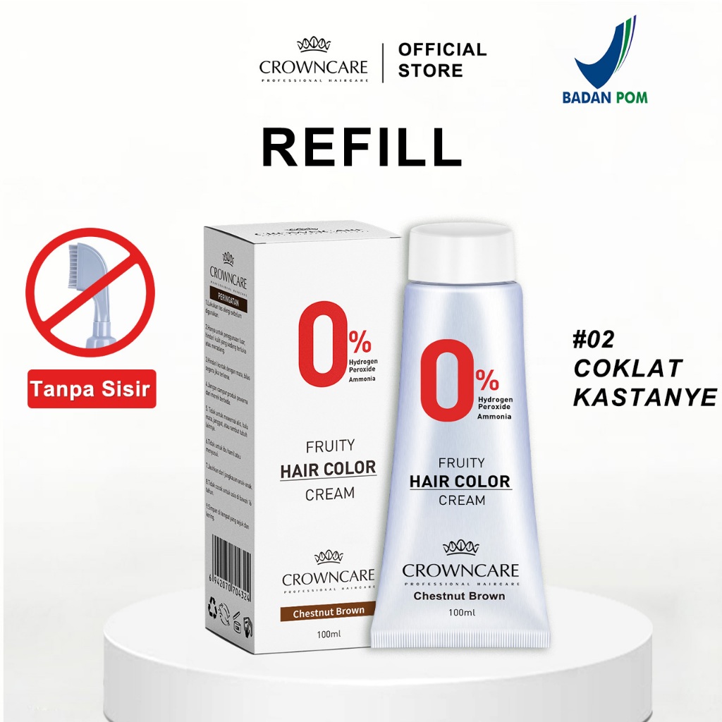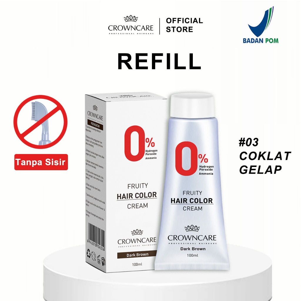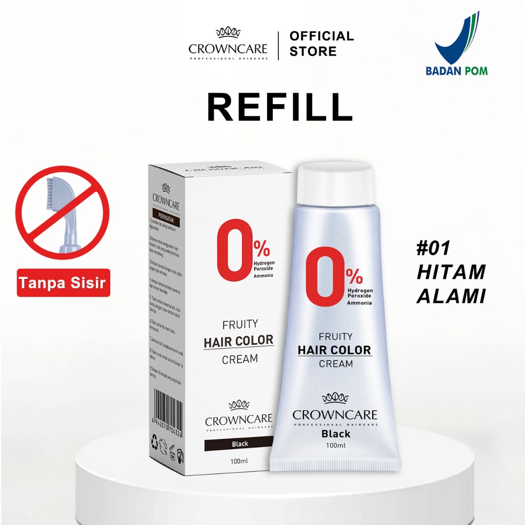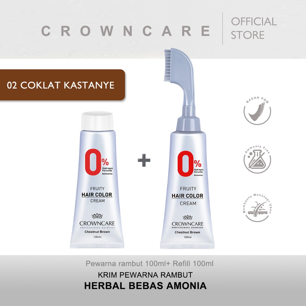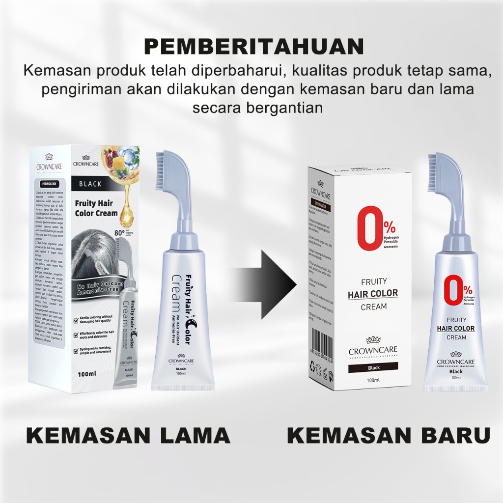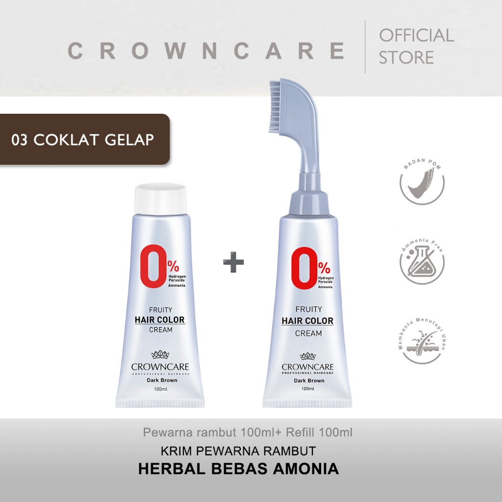 Crowncare Pewarna Rambut - Hair Coloring Cream Alami | Pewarna Rambut Ammonia Free & Anti Uban, Warna Hitam & Coklat Gelap, Aman & Tidak Berbahaya, Penghitam Rambut Herbal dengan Aroma Buah, Hasil Natural & Tahan Lama