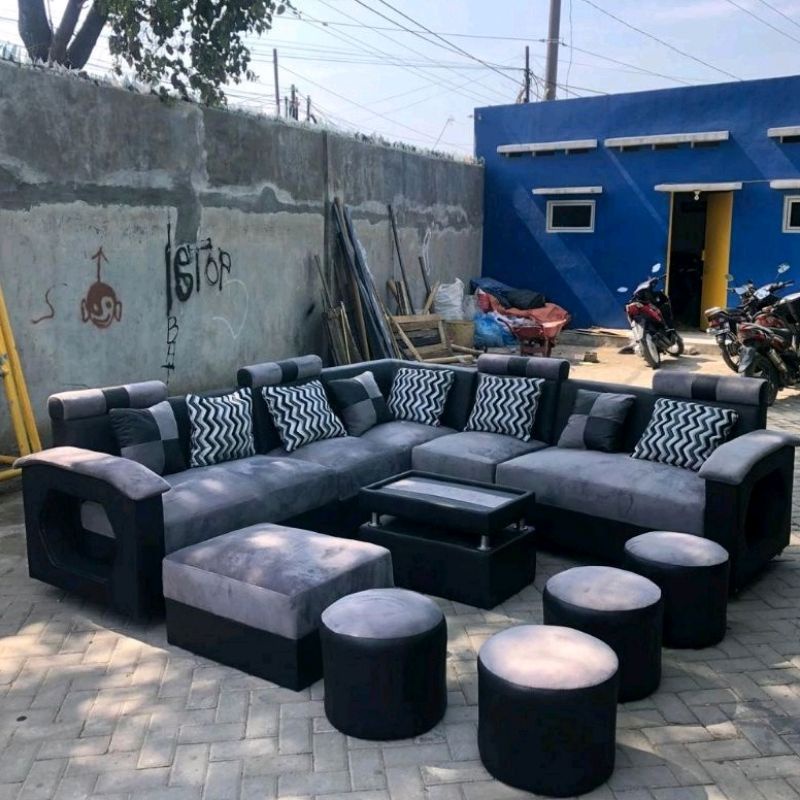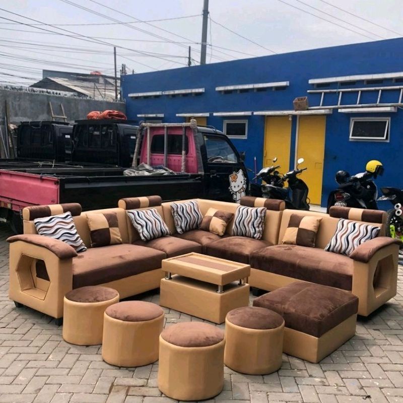 Sofa Eksklusif Sudut Jumbo U + Puff Davinci Minimalis + Meja (Sofa Ruang Tamu)