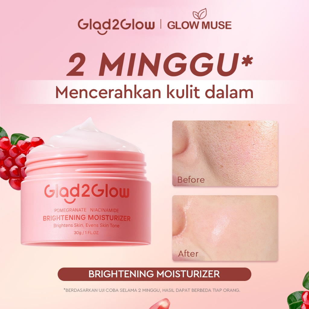 [100% ORI]Glad2Glow Pomegranate Niacinamide Brightening Moisturizer Mencerahkan Pemutih Kulit Gel Pelembab Bercahaya Krim Siang dan Malam Perawatan Kulit Ekstrak Delima G2g Asam Lemak Asam Delima Pelembab Esensi Wajah Perawatan Kulit Pelembab Wajah