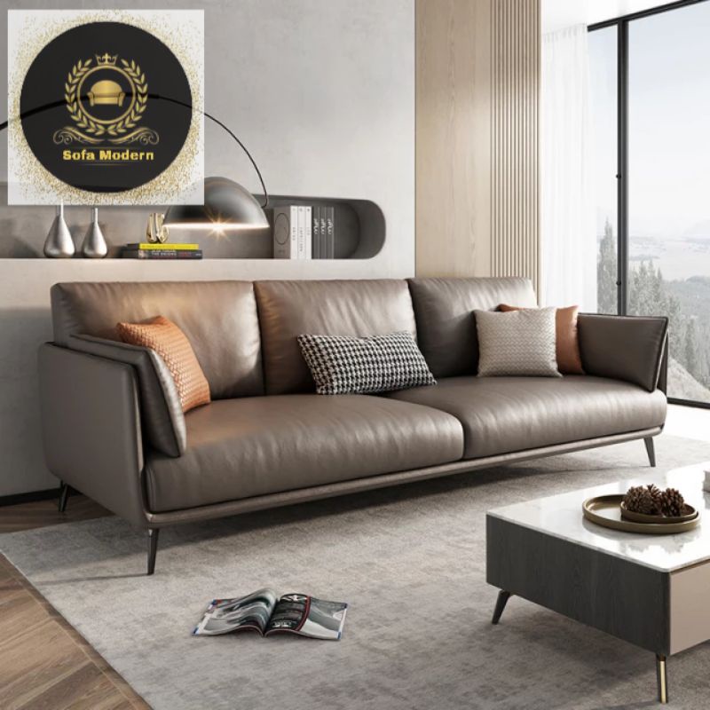 Sofa Kulit 3 Seater Minimalis Ruang Tamu Modern Terbaru Super Elegant Realpict