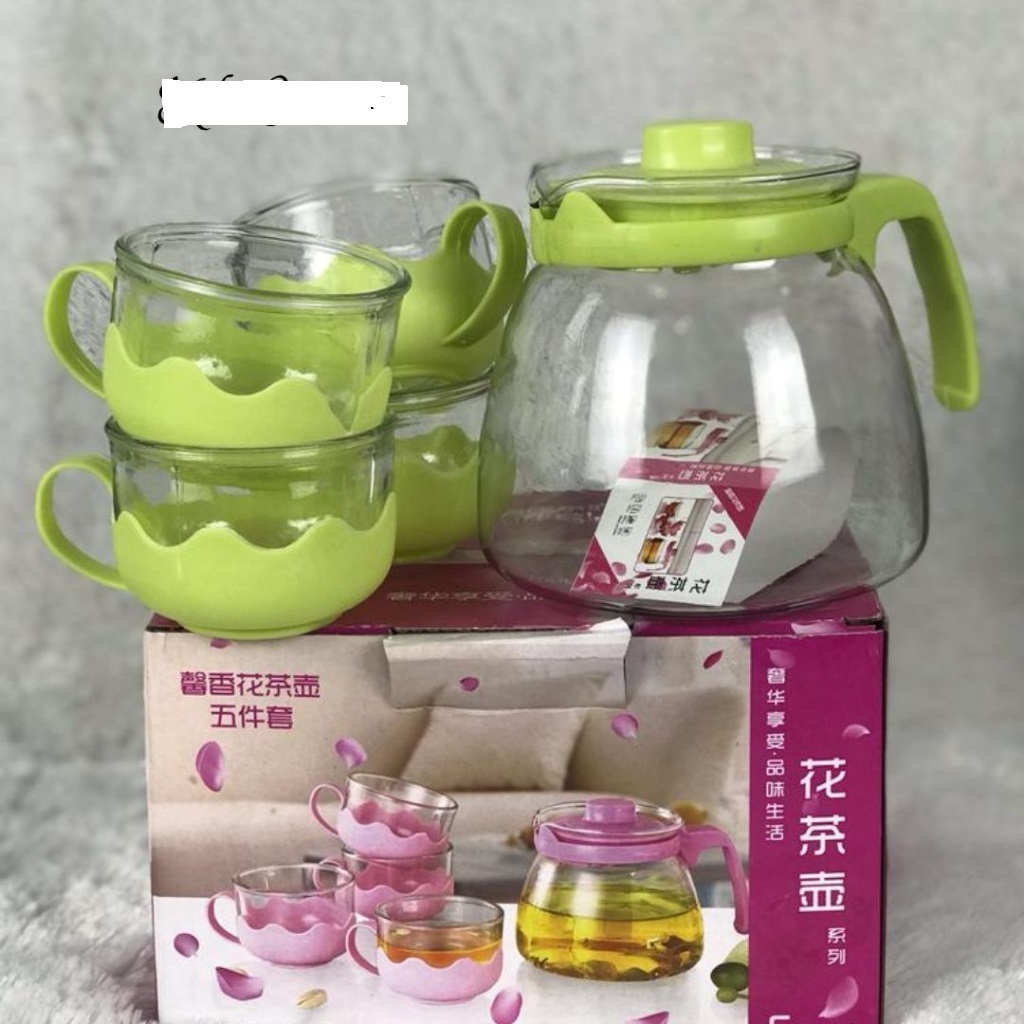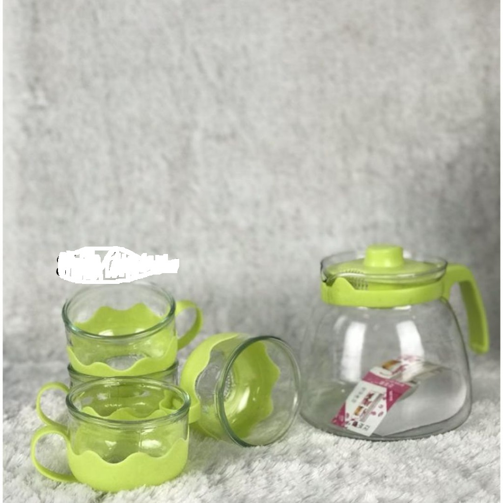 TEA POT TANPA SARING Set Bahan Kaca isi 1 Teko 4 Cangkir kecil