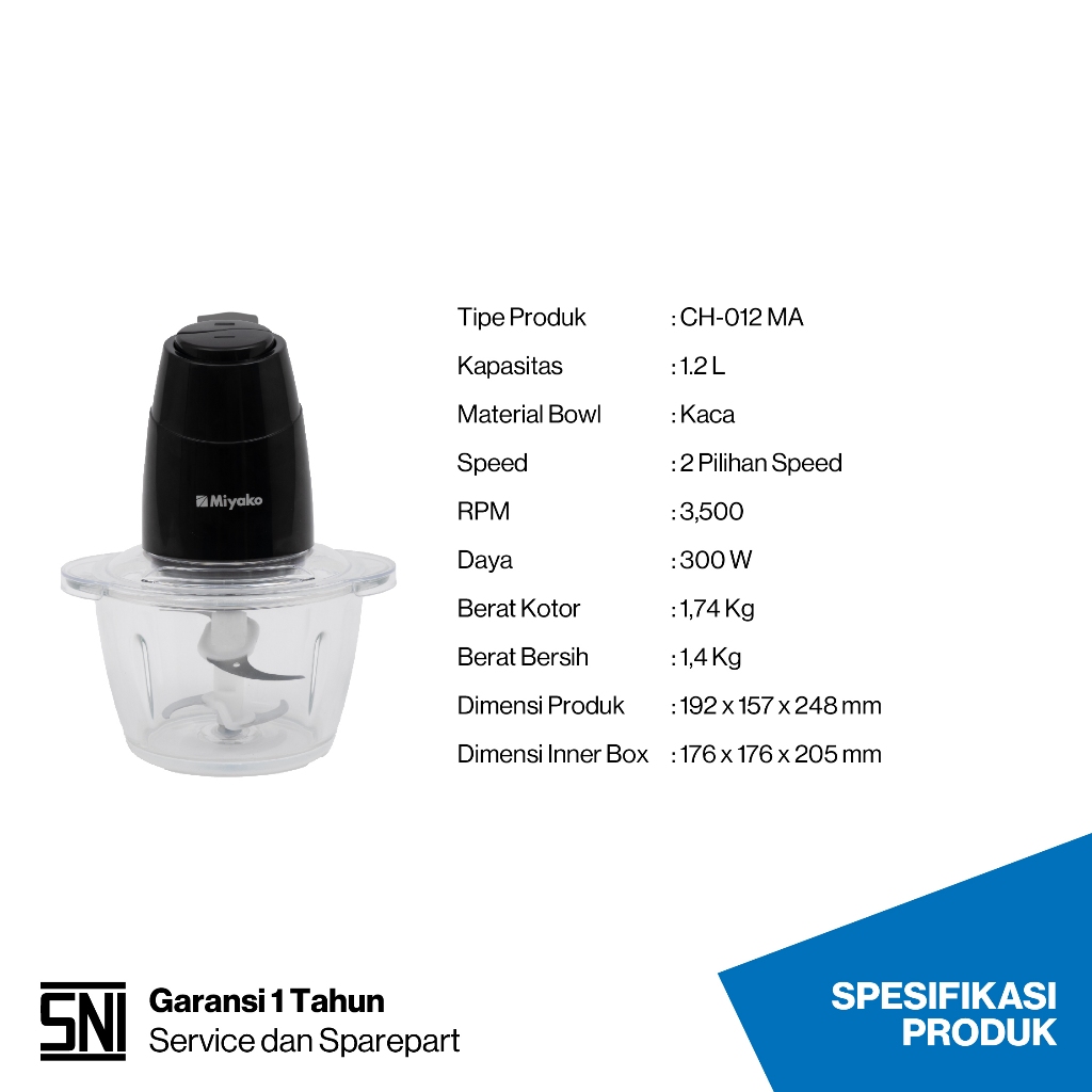 Multi Chopper Miyako CH012MA Food Processor Penggiling Daging - Kaca - 1.2 Liter