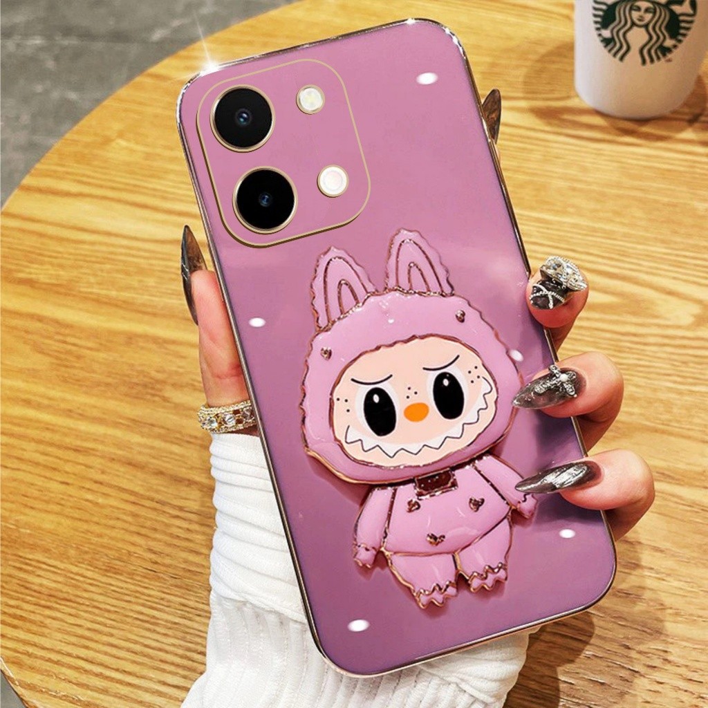 Soft Case Vivo Y28 Y19s Pro Y100 4G 5G Casing Dudukan Cermin Labubu Handphone