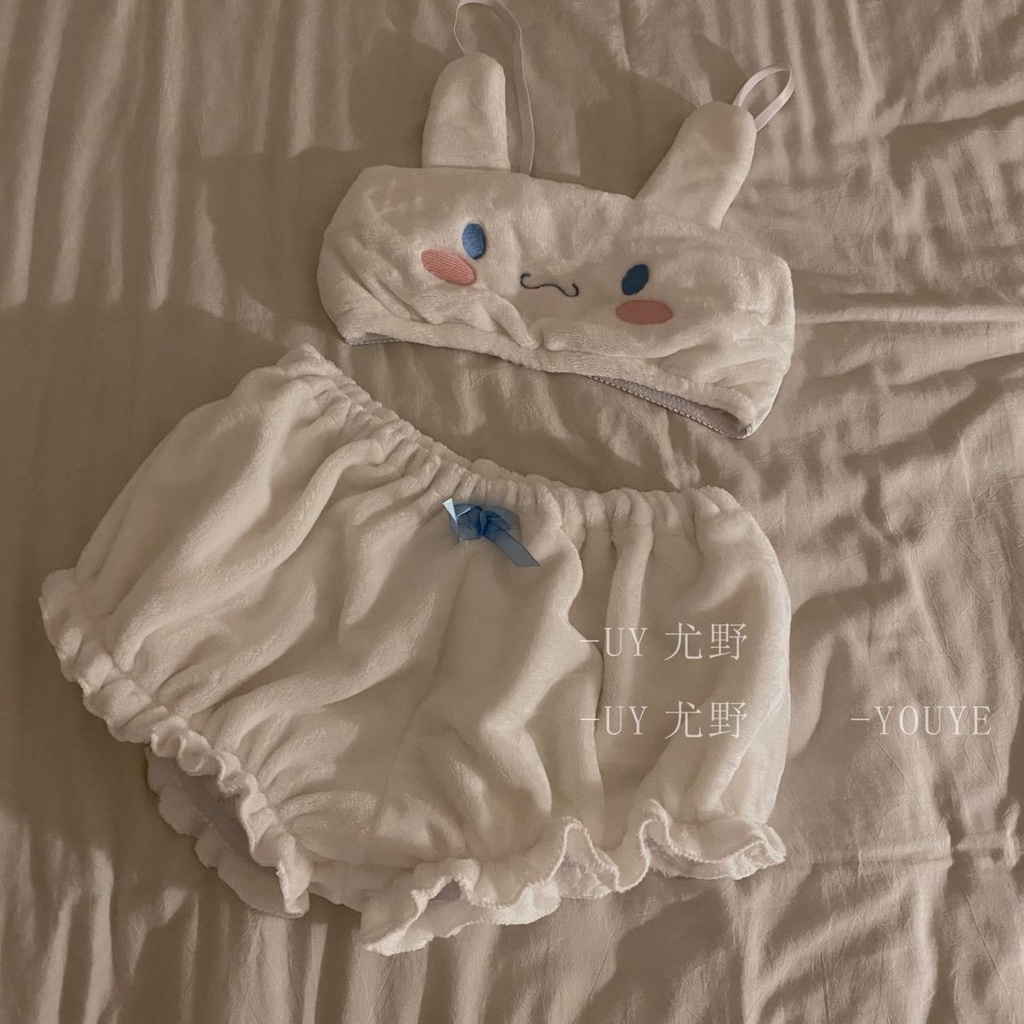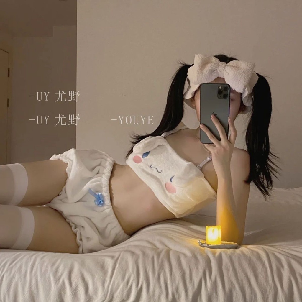 Soft Girl Plush Underwear Girl Cartoon Ears Laurel Dog Home Pajamas Cartoon Sling Loli Tube Top/baju tidur anak perempuan